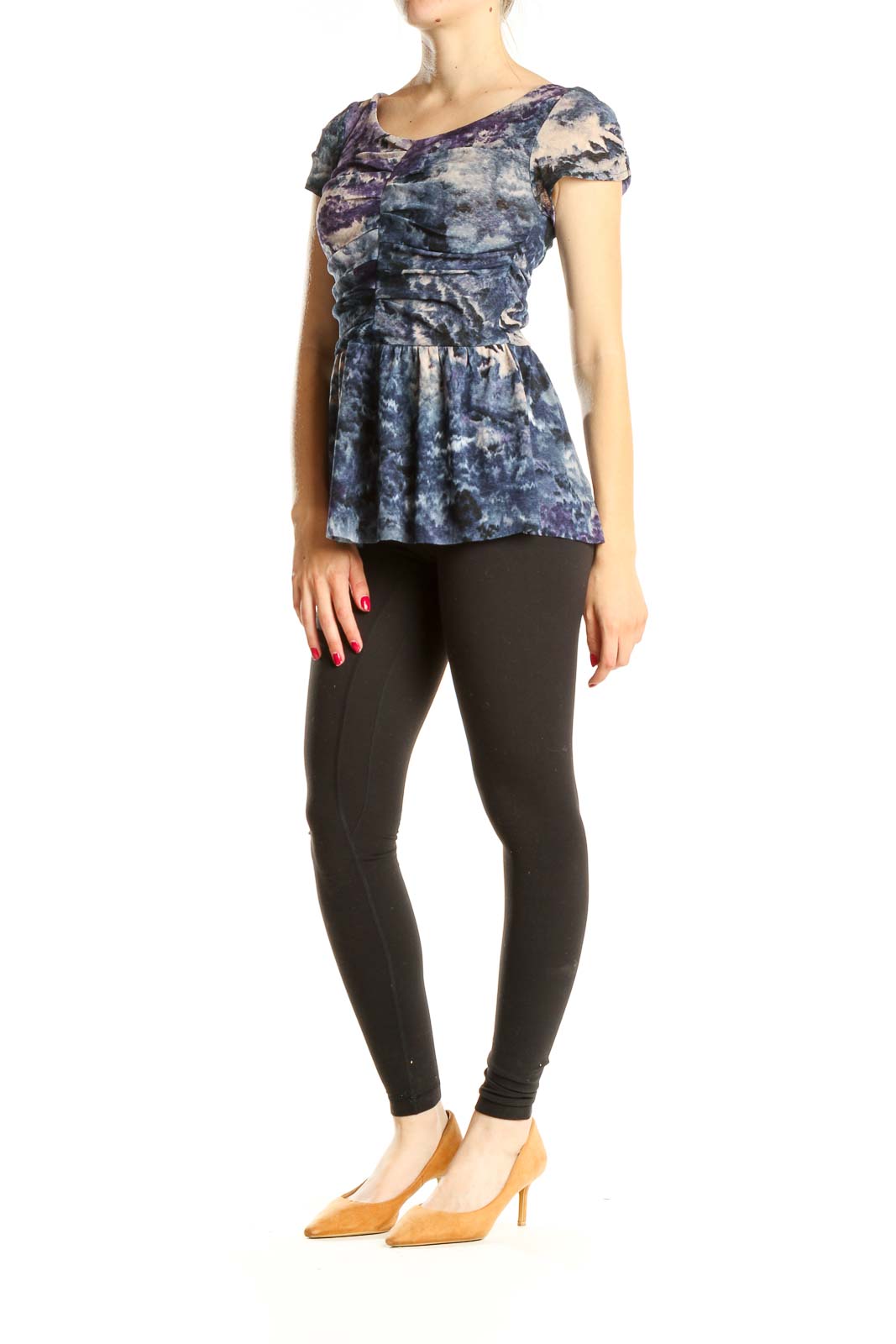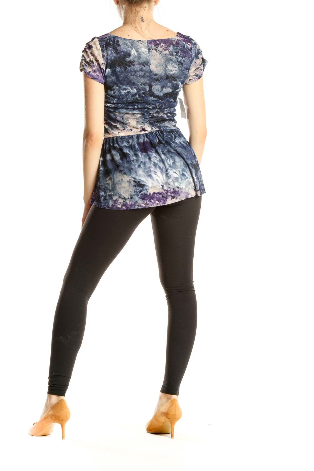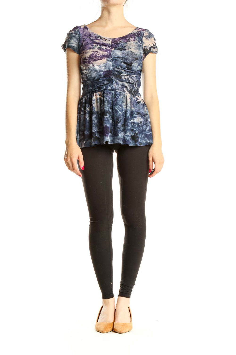 Blue Purple Tie And Dye Fitted Peplum Bohemian Blouse