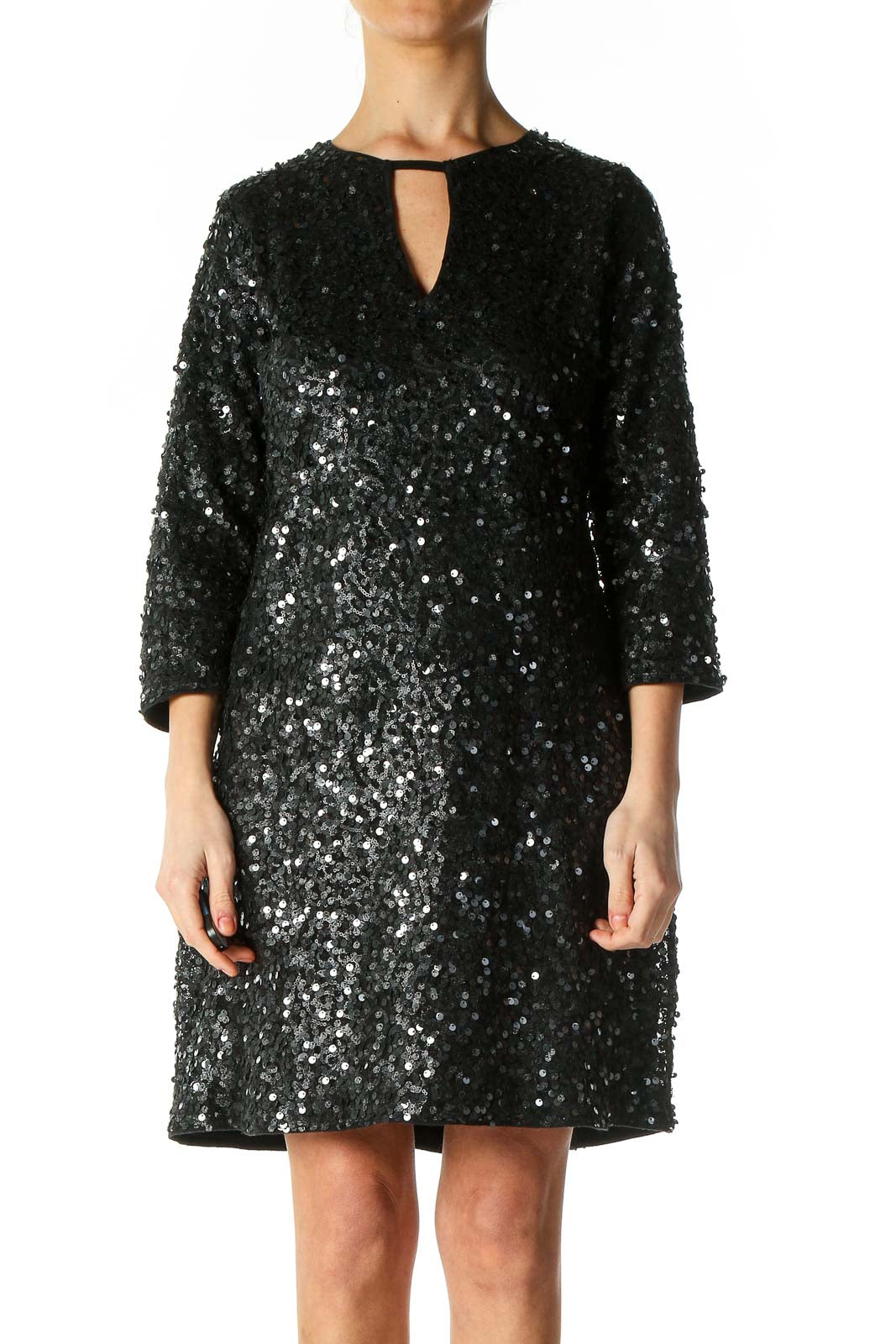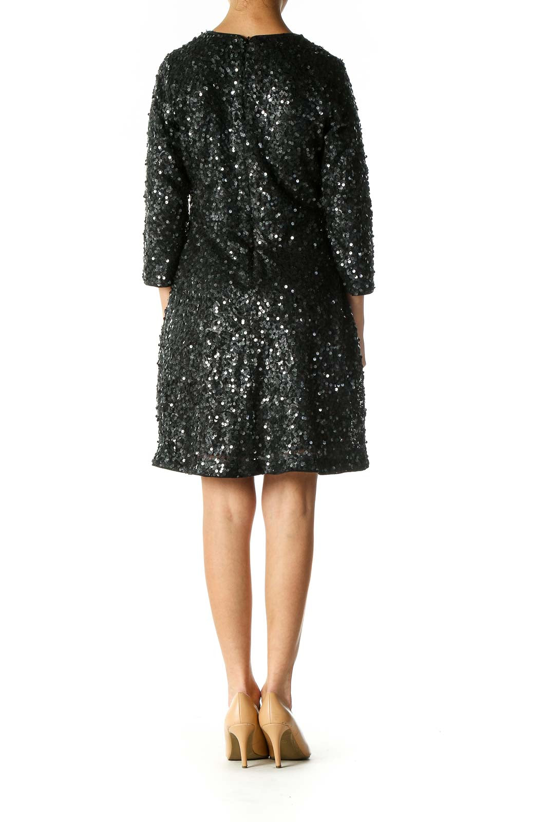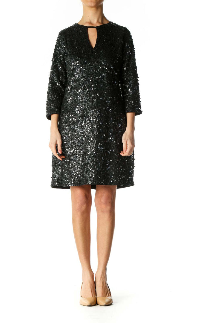 Black Sequin Cocktail A-Line Dress