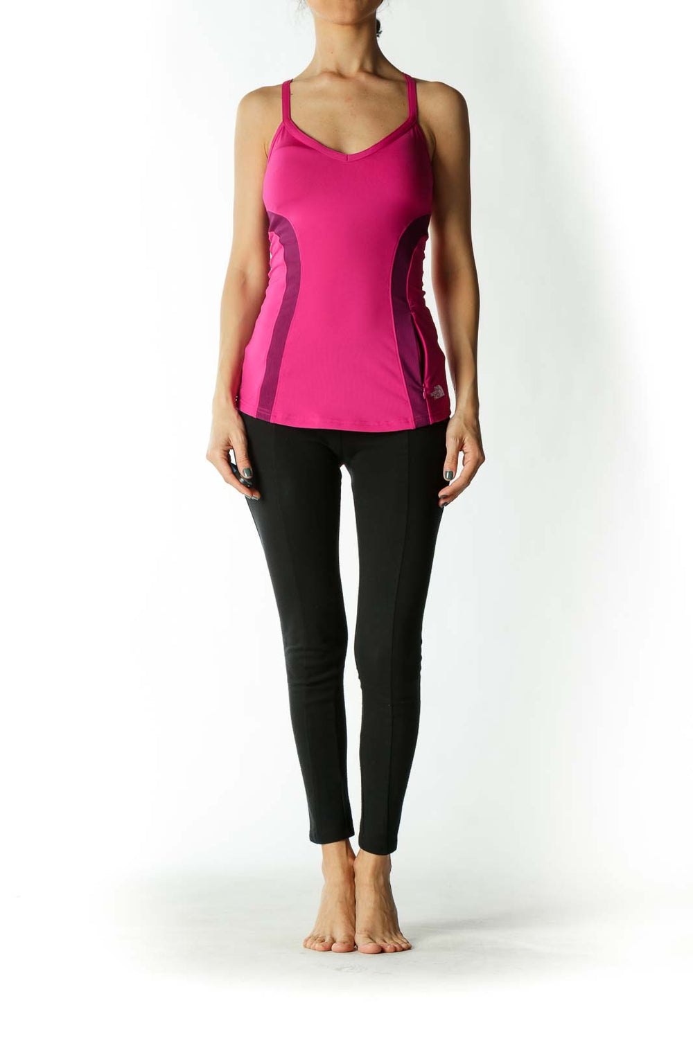 Magenta and Purple Workout Tank With Front Zip Pocket and Built in Bra