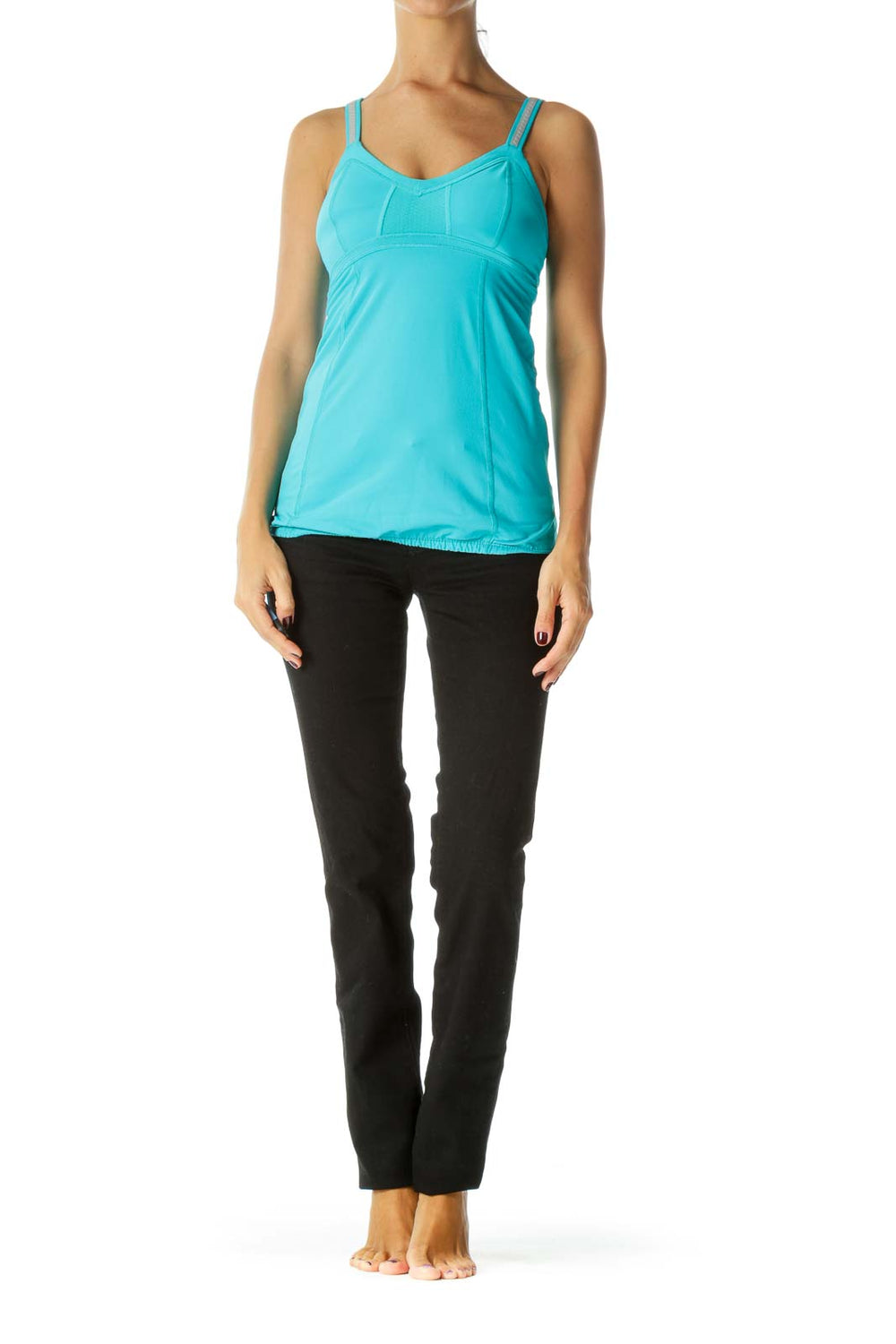 Blue Reflective Stripes on Straps Sports Tank Top with Built-In Bra