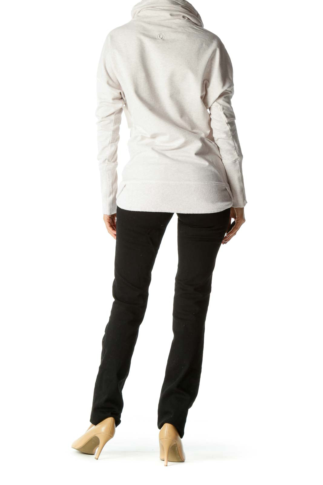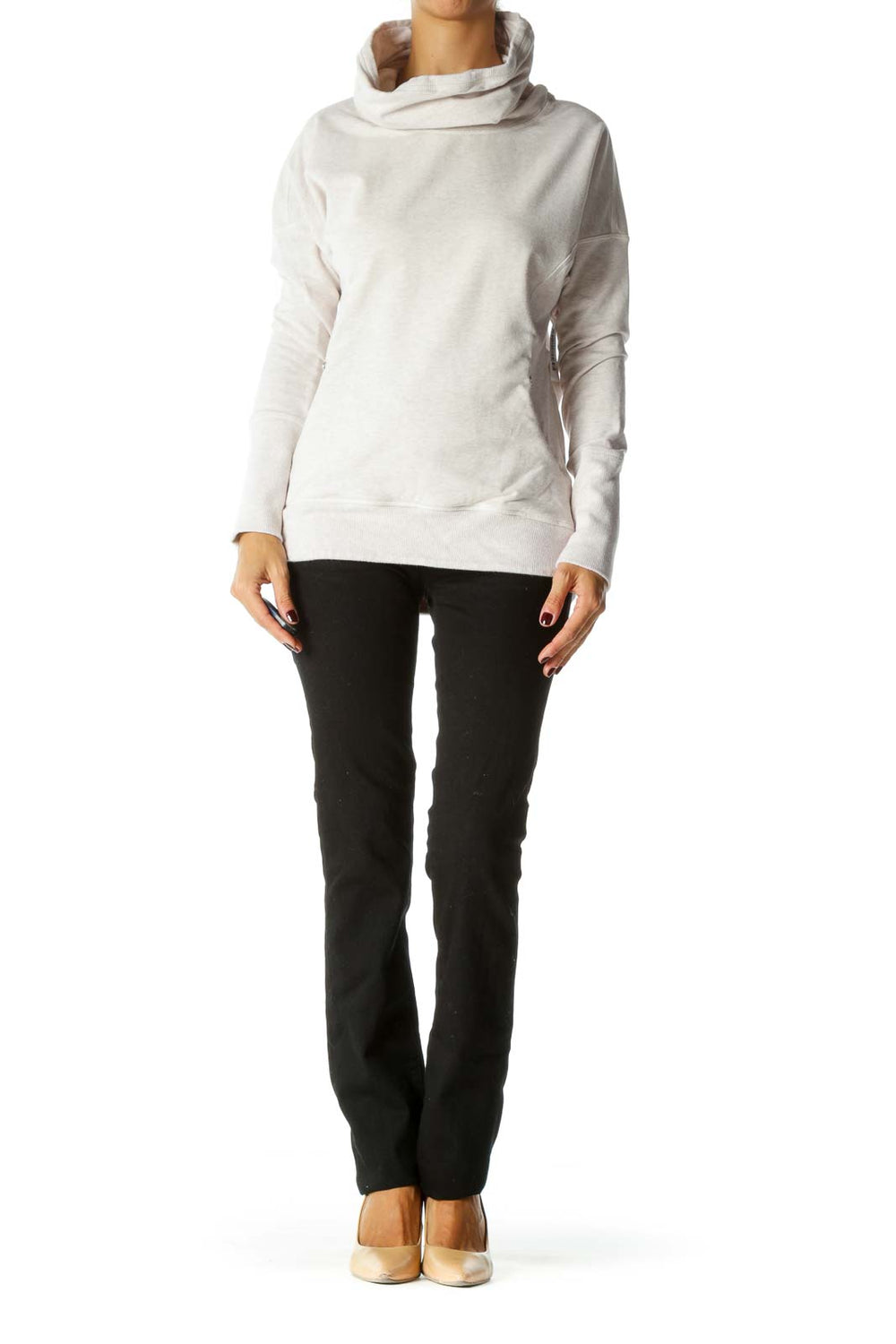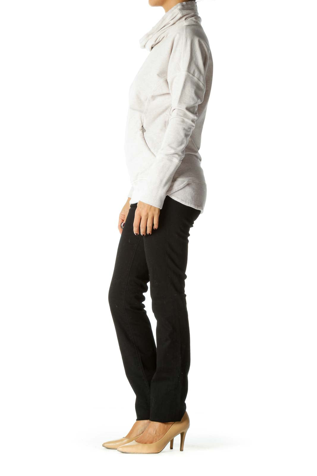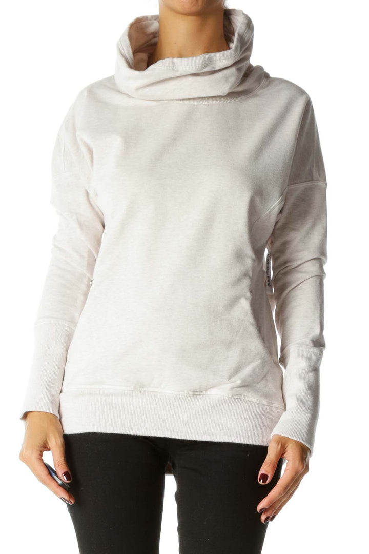 Light Pink Gray Mottled Print Cowl Neck Bat Sleeves Zippered Pockets Pullover Jacket