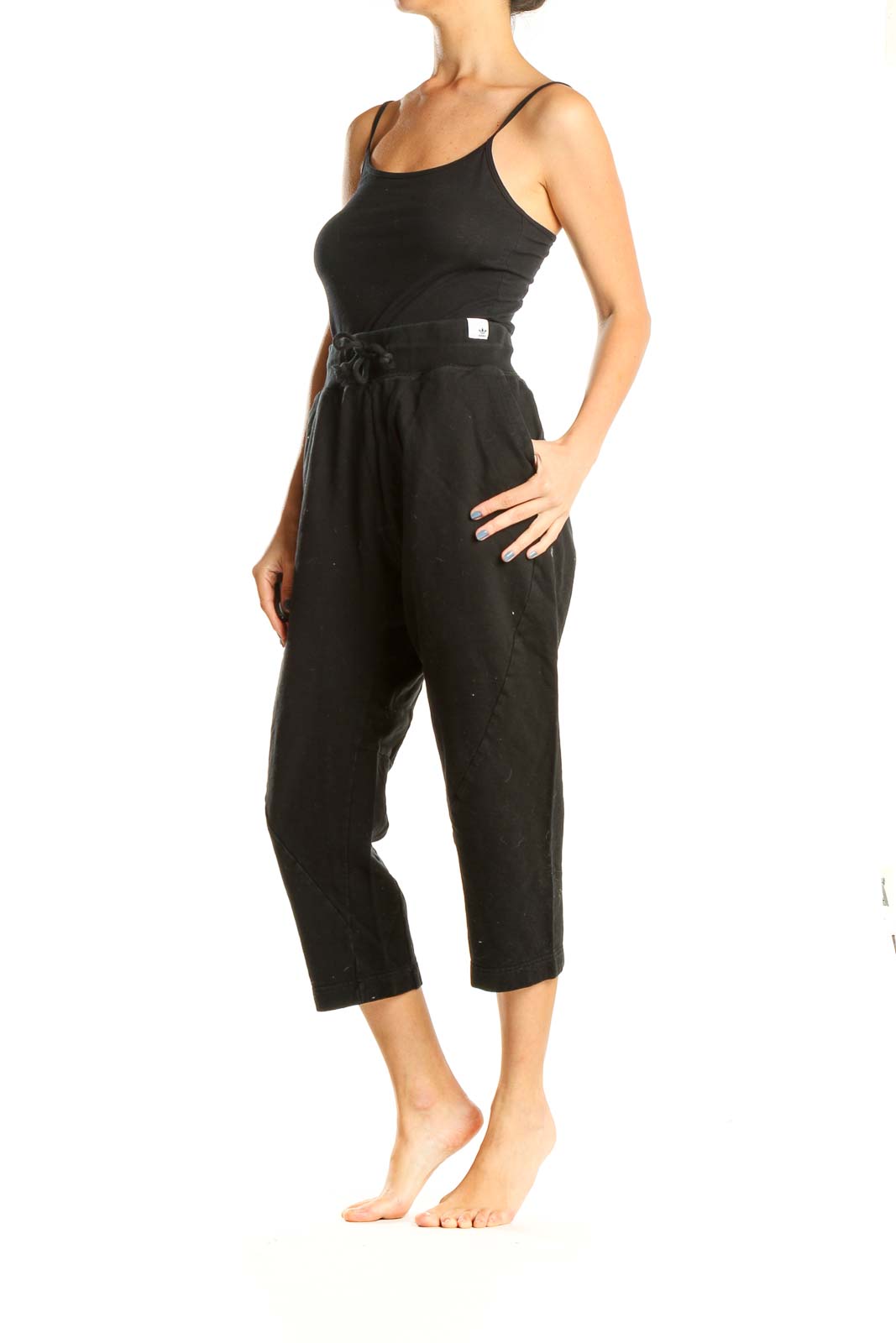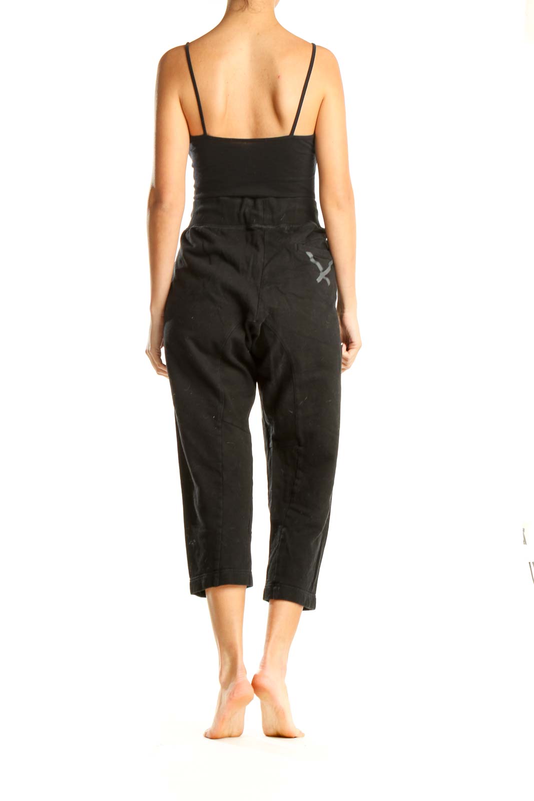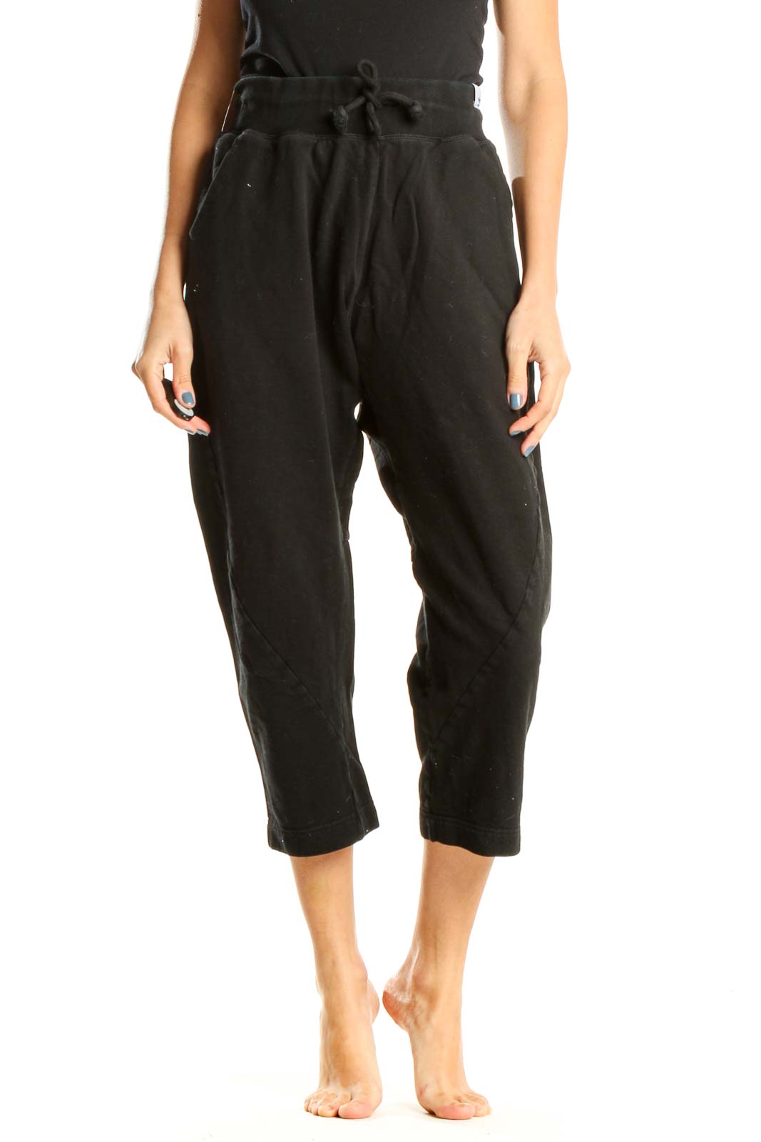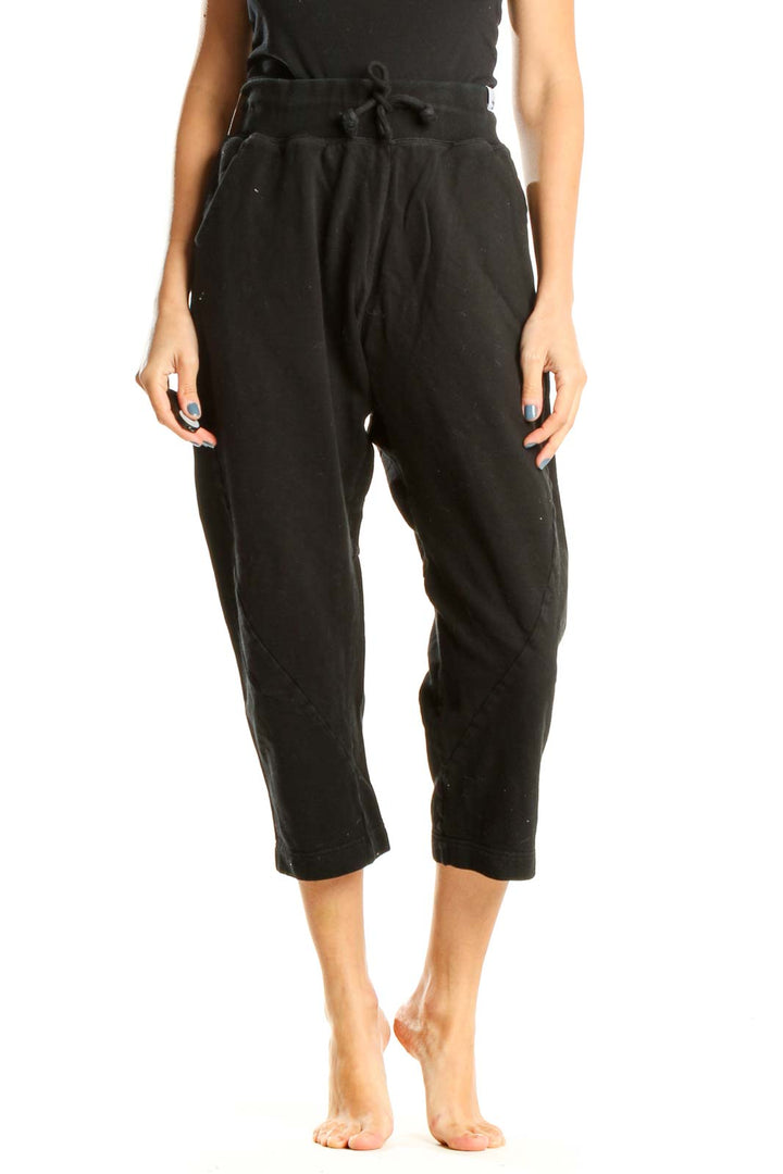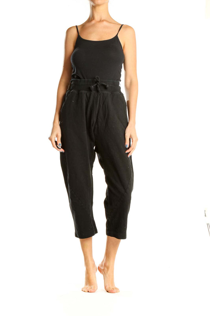 Black Textured Cropped Sweatpants