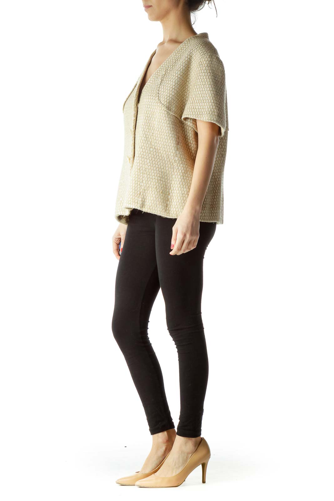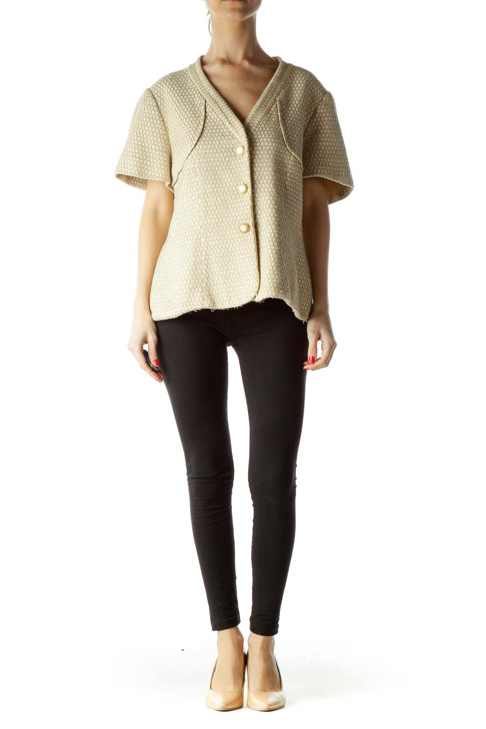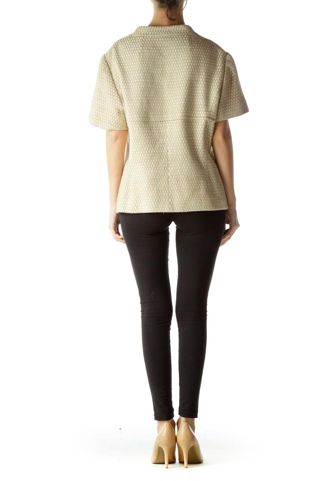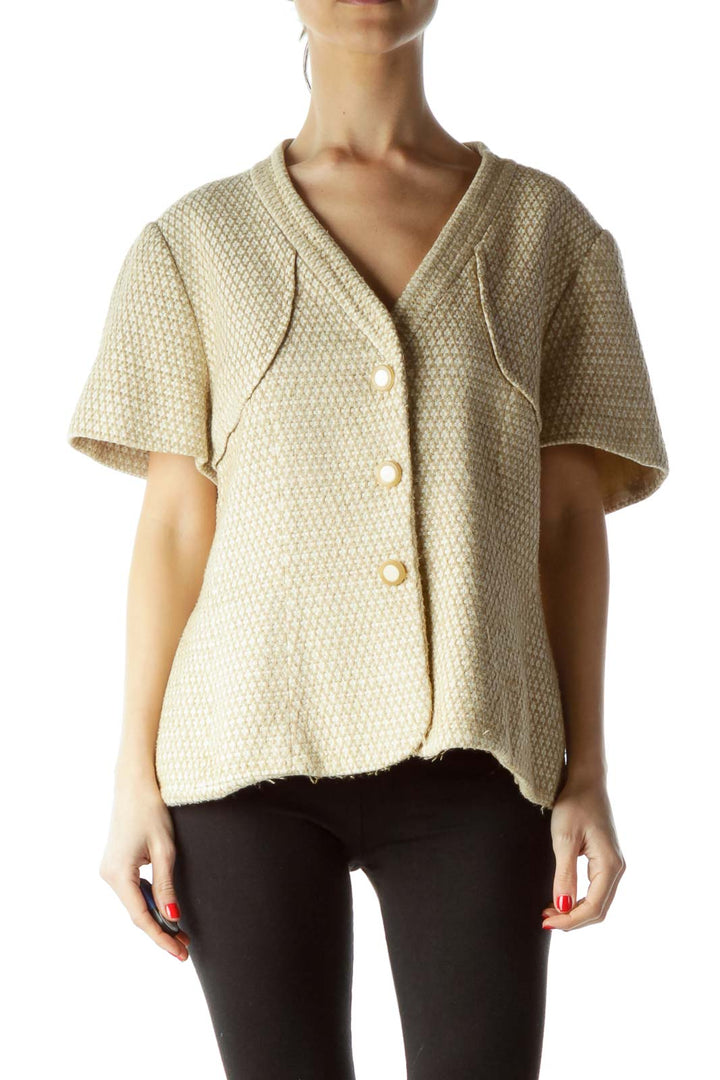 Beige Cream Short Sleeve Knit Blazer