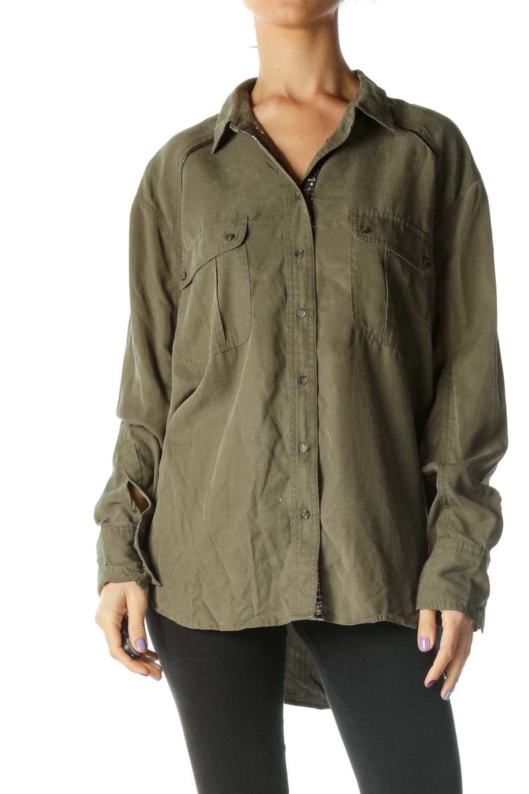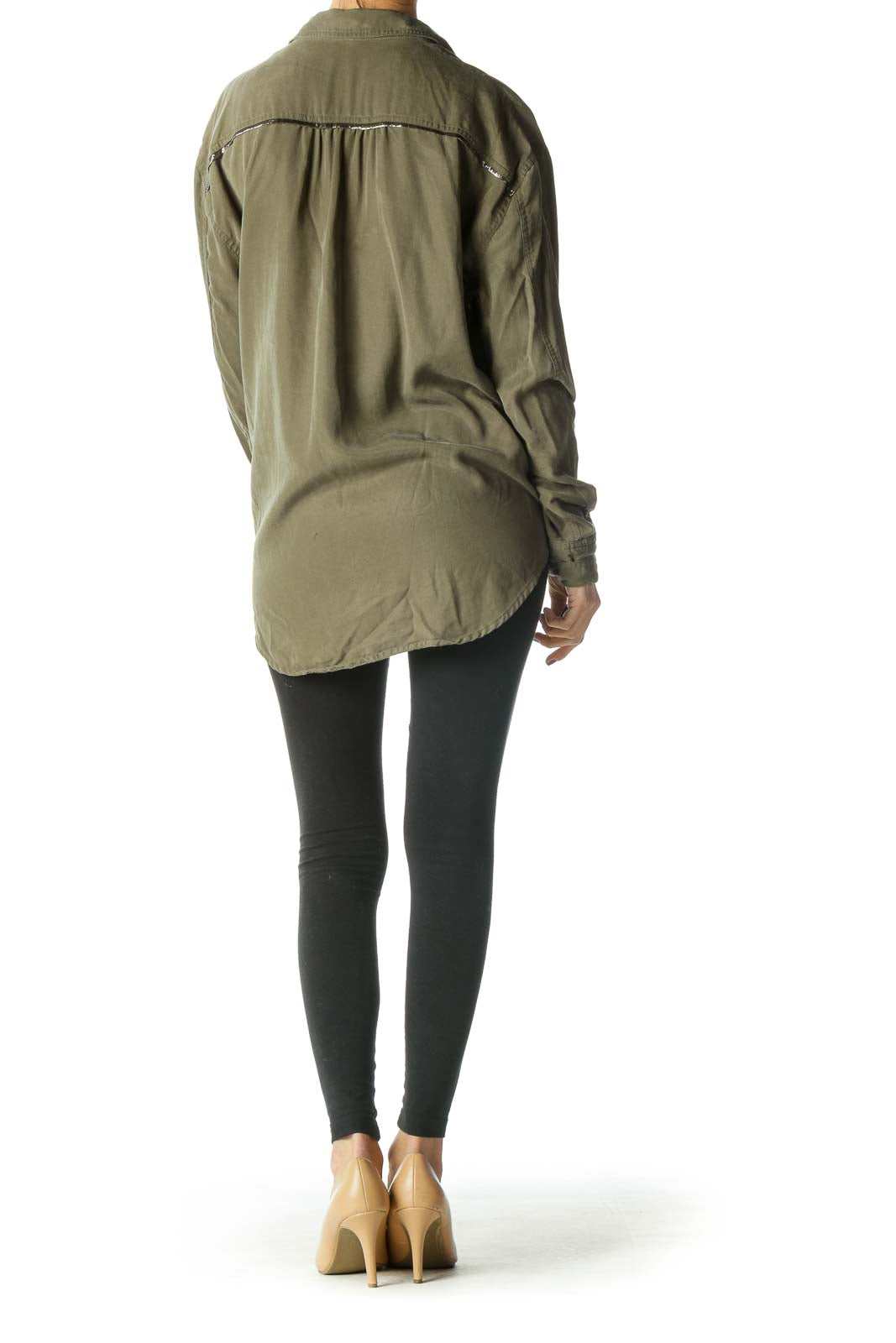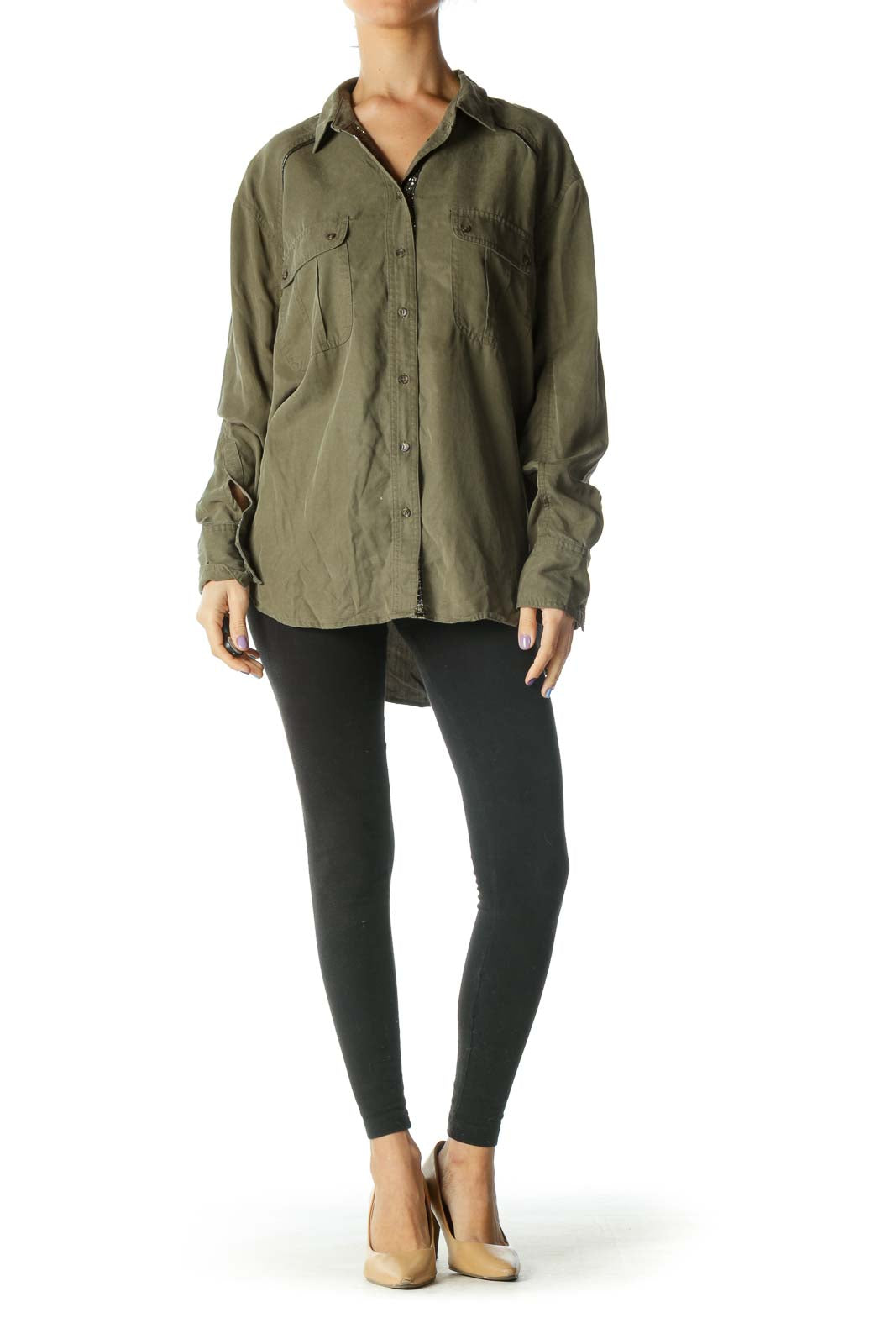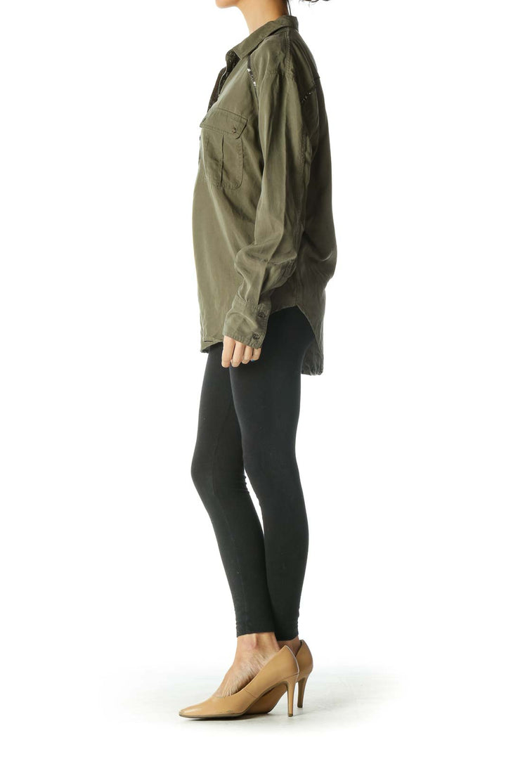 Olive Oversized Button-Down Shirt