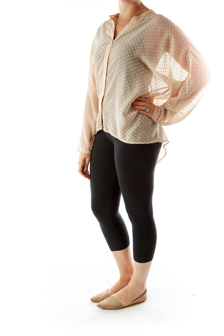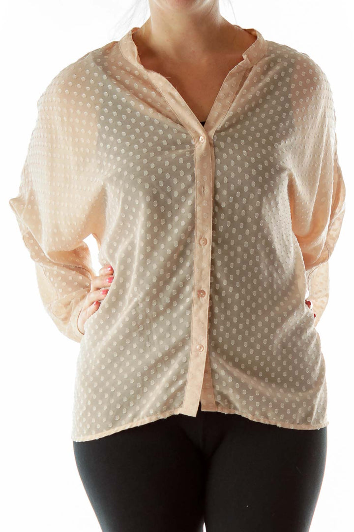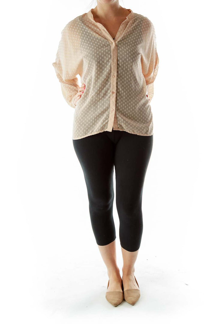 Beige Polka-Dot Textured Blouse