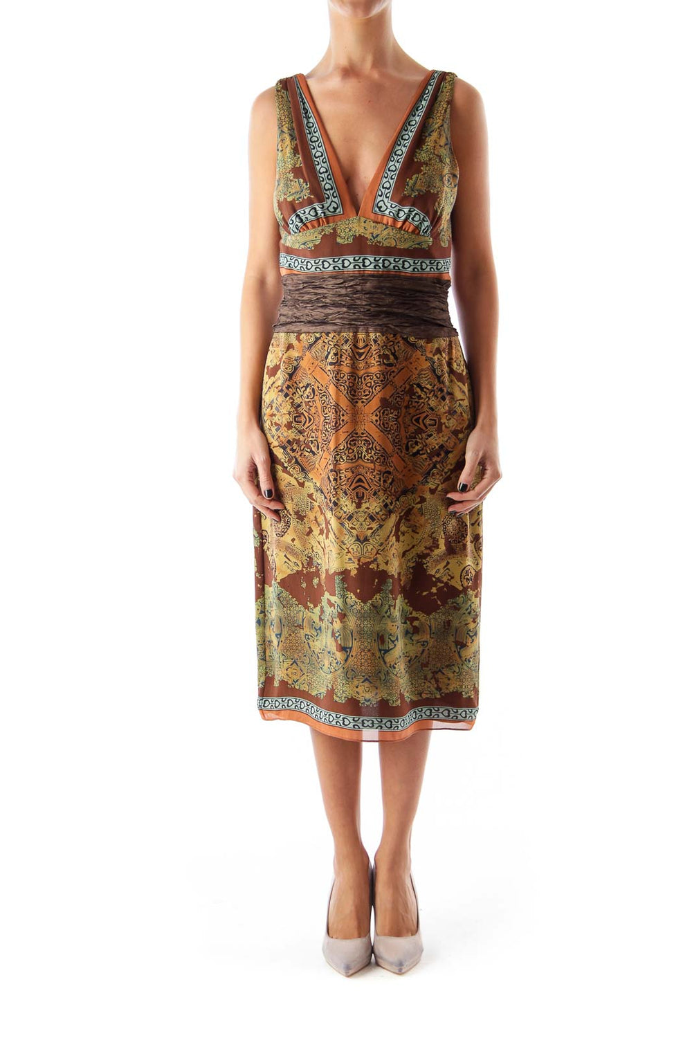 - Measurements: Bust 32", Hips 38", Length 43", Waist 28"