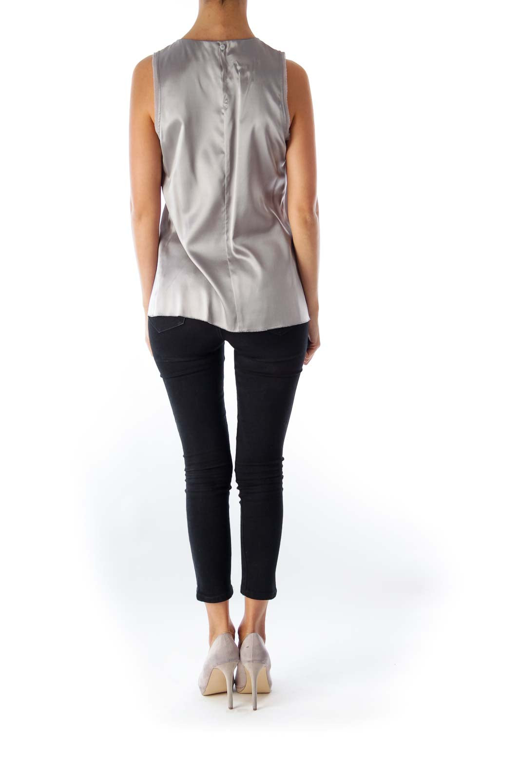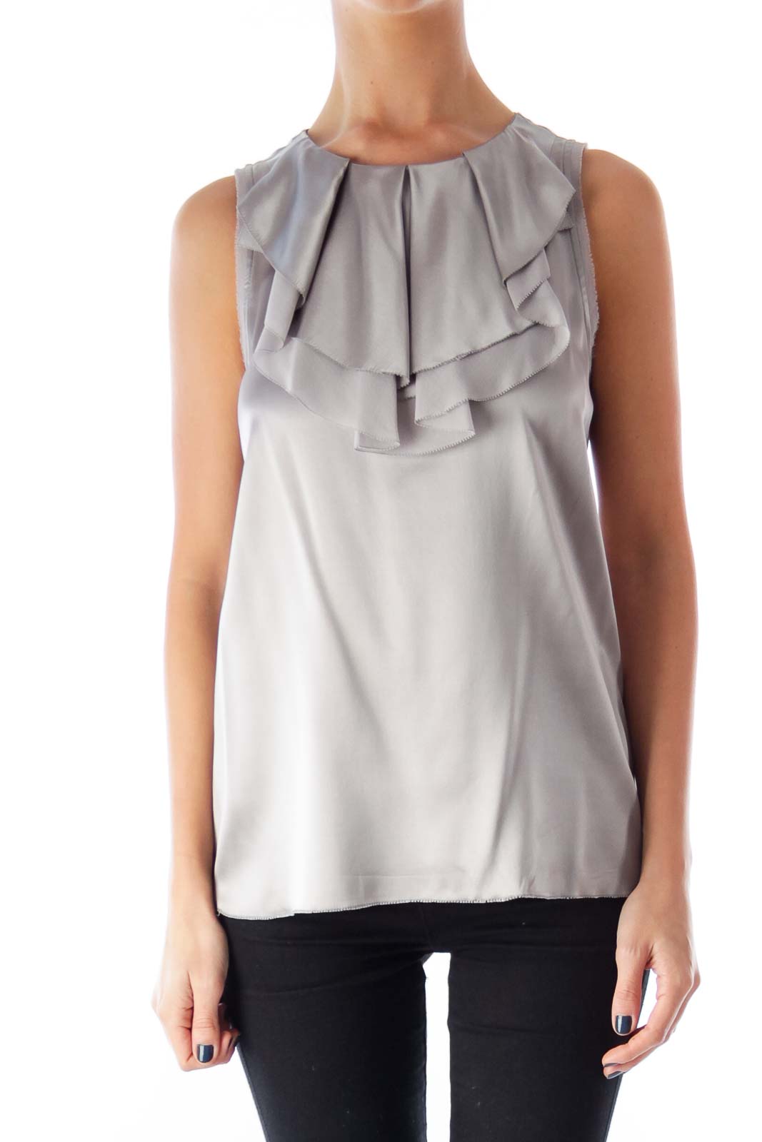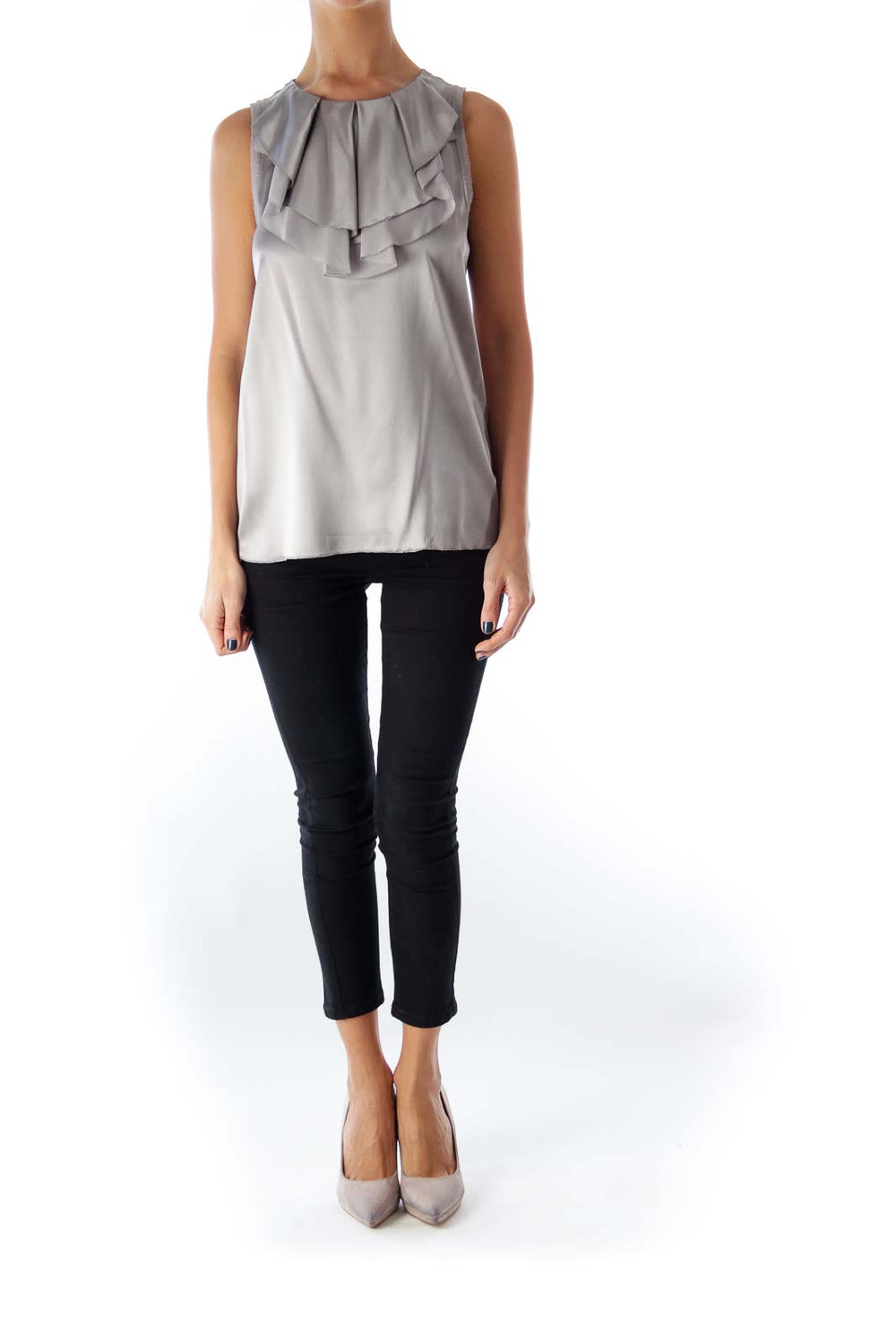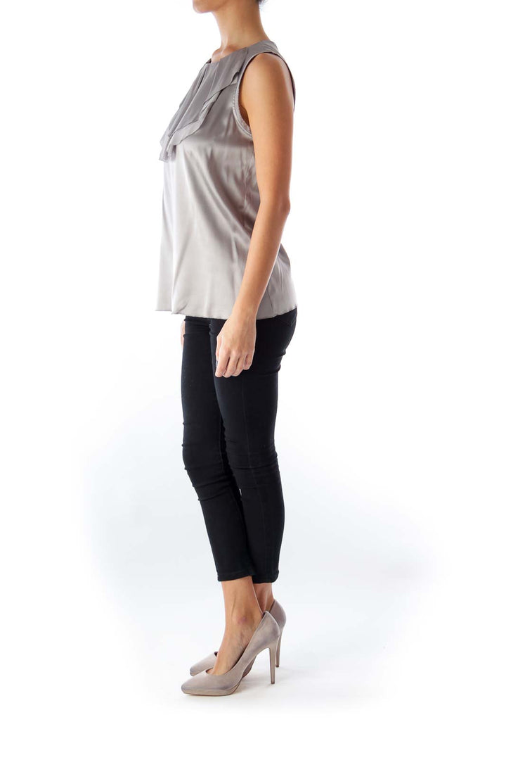 Gray Ruffle Sleeveless Top