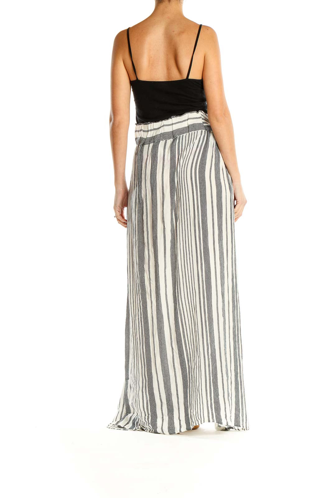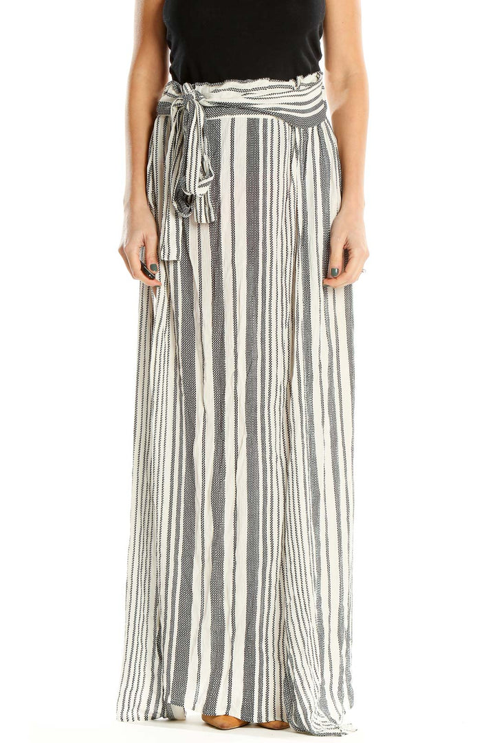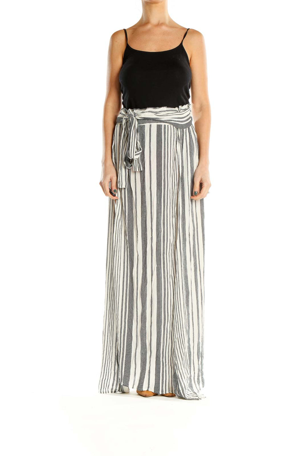 Gray Striped Waist Tie Bohemian Maxi Skirt