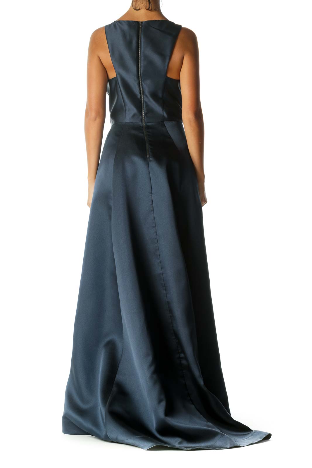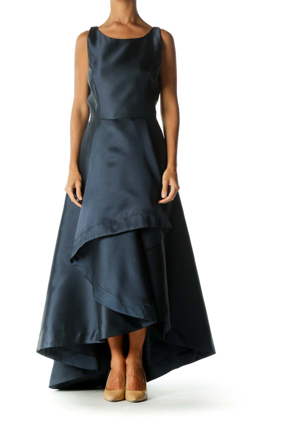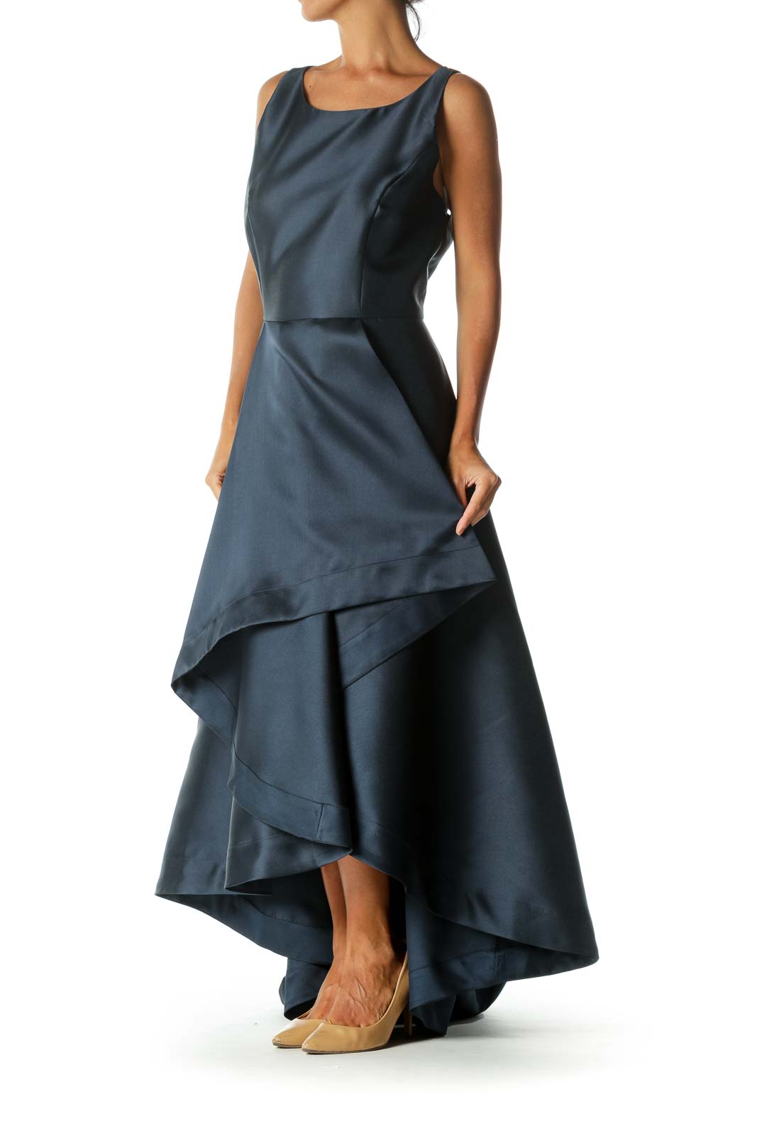 Blue Sleeveless Shiny Round-Neck High-Low Evening Dress
