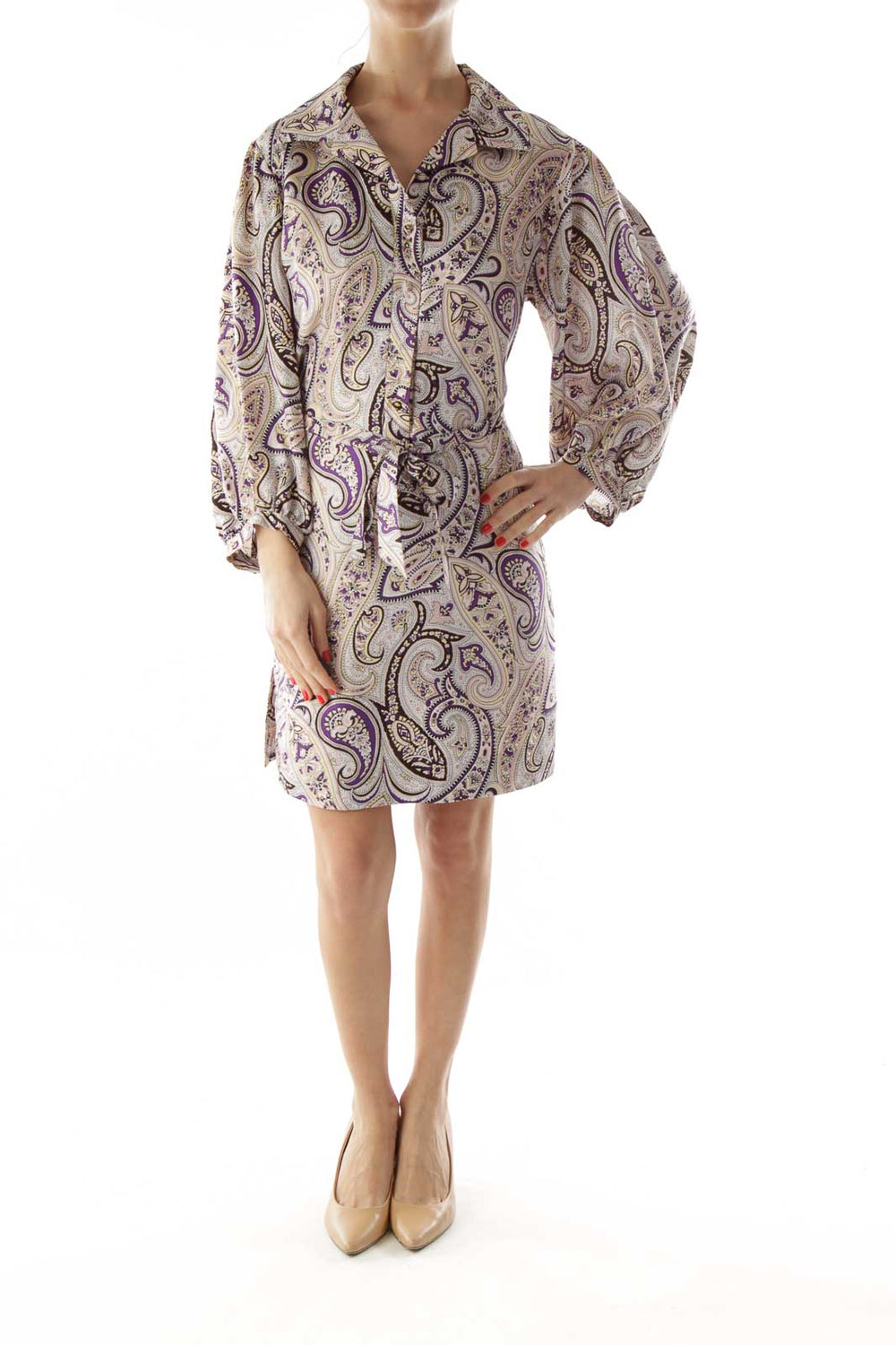 Beige and Purple Paisely Silk Dress