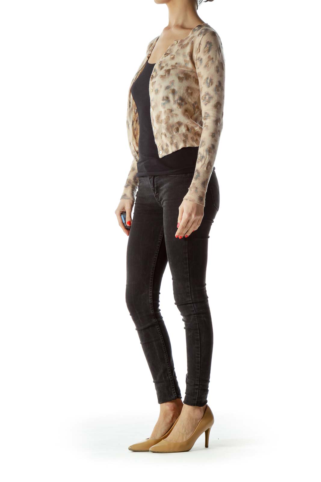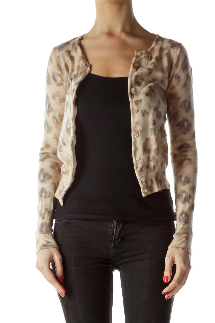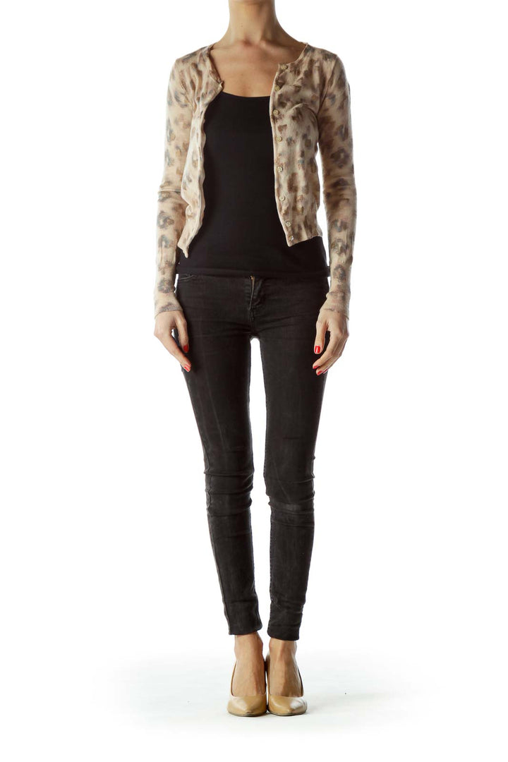 Elevate your wardrobe with this chic beige leopard print cropped cardigan from J.Crew. This stylish knit piece features a classic button-front design and a flattering cropped length that hits just above the waist. The soft, lightweight fabric offers comfort and versatility, making it perfect for layering over your favorite tops or dresses.