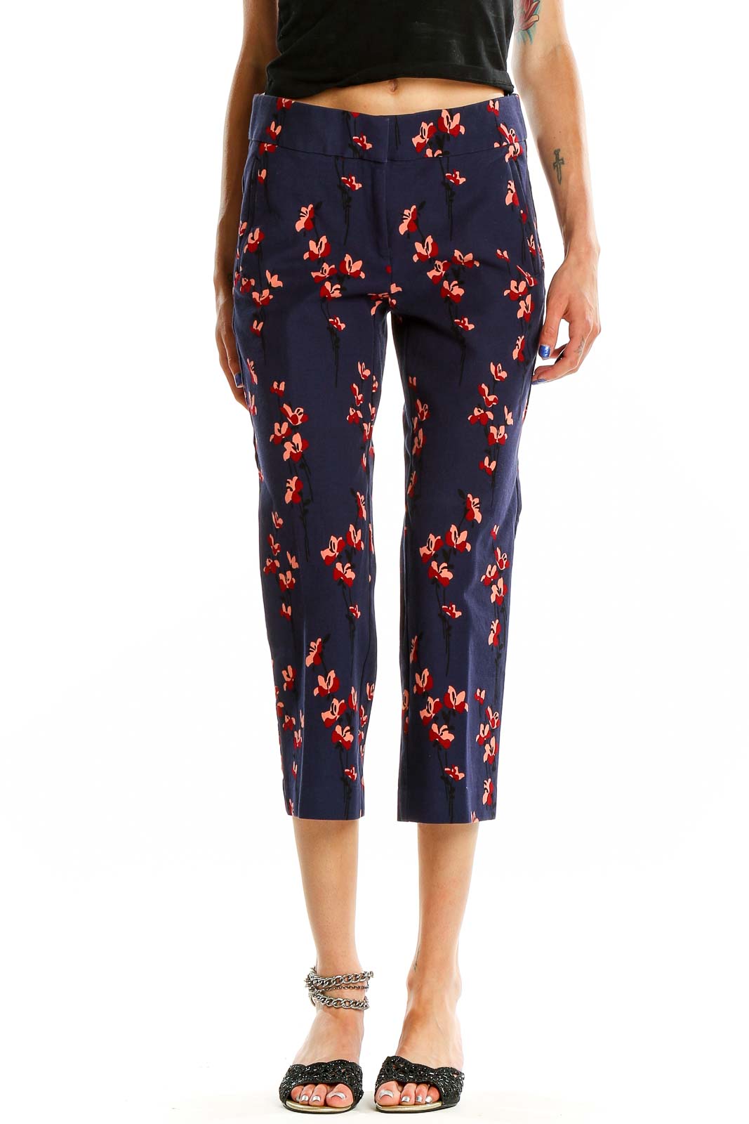 Step out in style with these charming navy cropped pants from Ann Taylor LOFT Petites. Adorned with a delightful red floral print, these pants offer a perfect blend of sophistication and whimsy. The slim-fit silhouette and cropped length create a flattering look that's ideal for both office wear and casual outings.