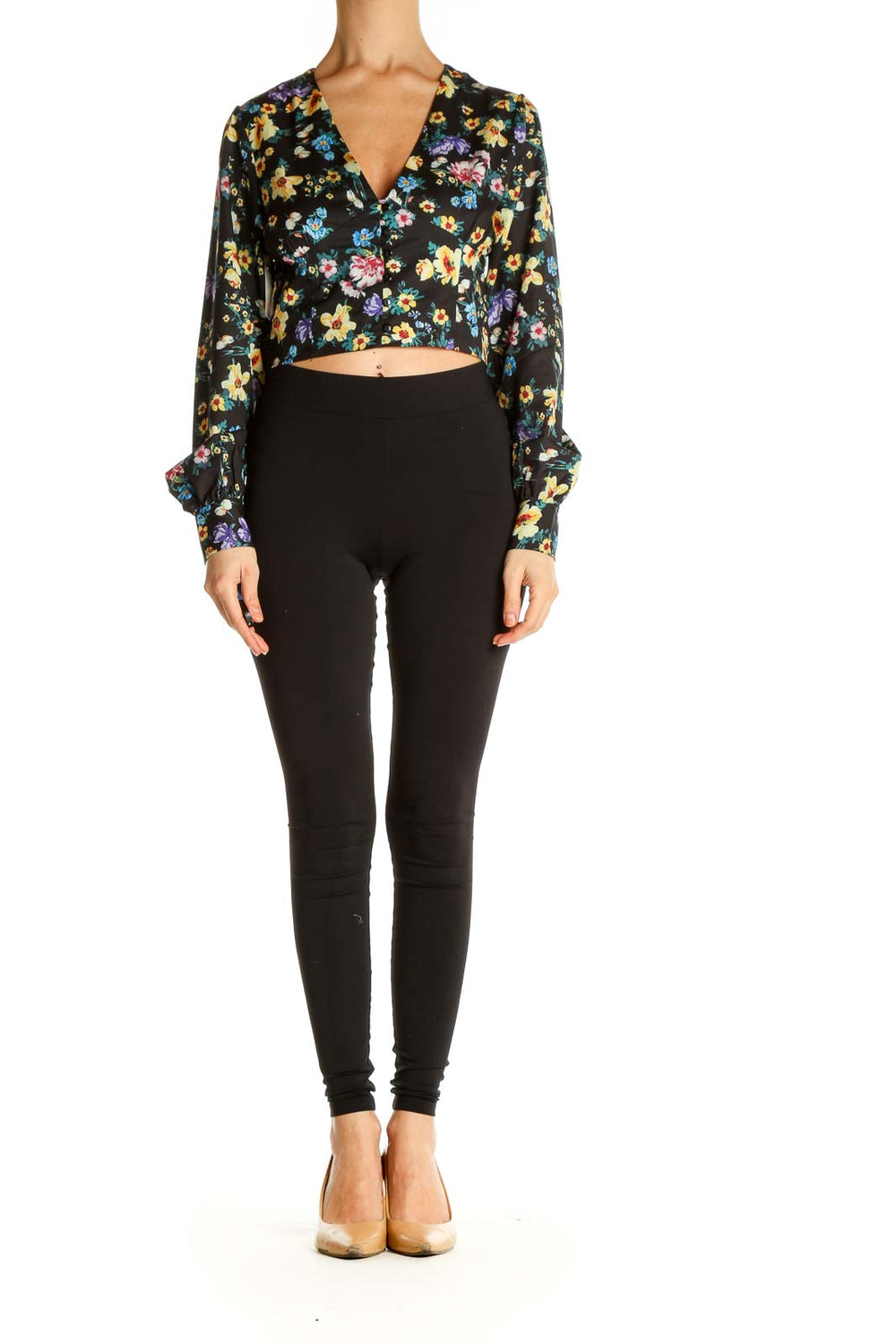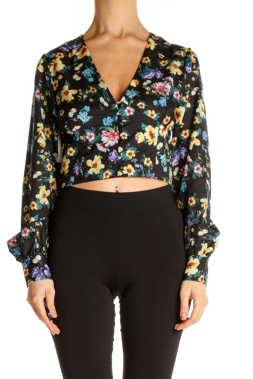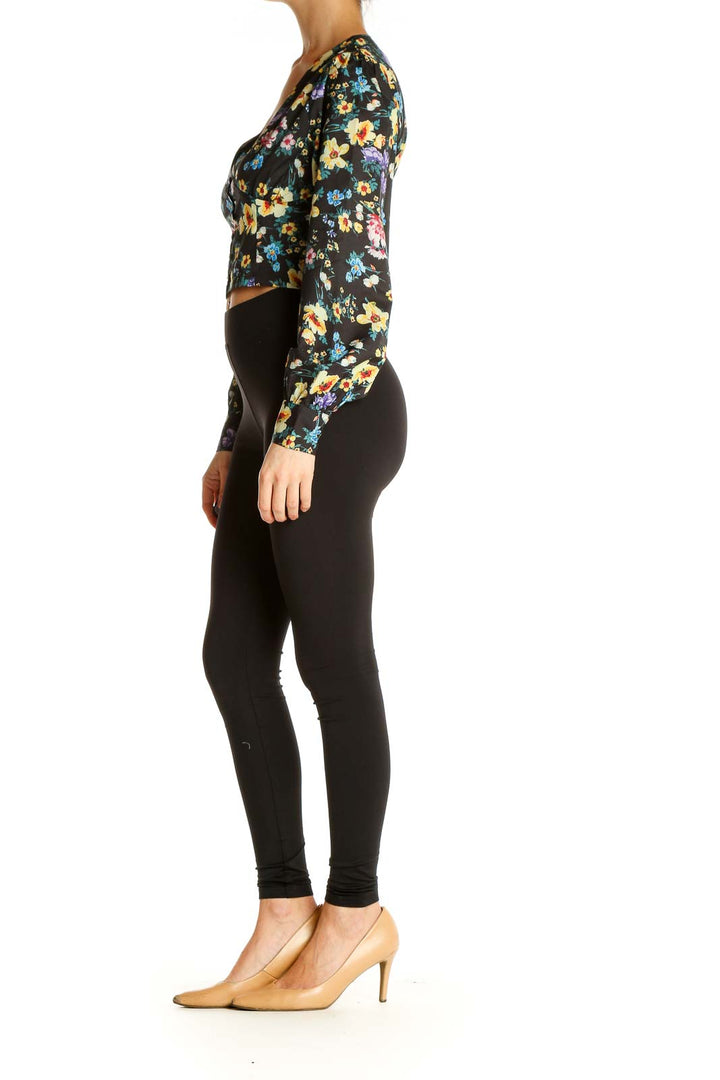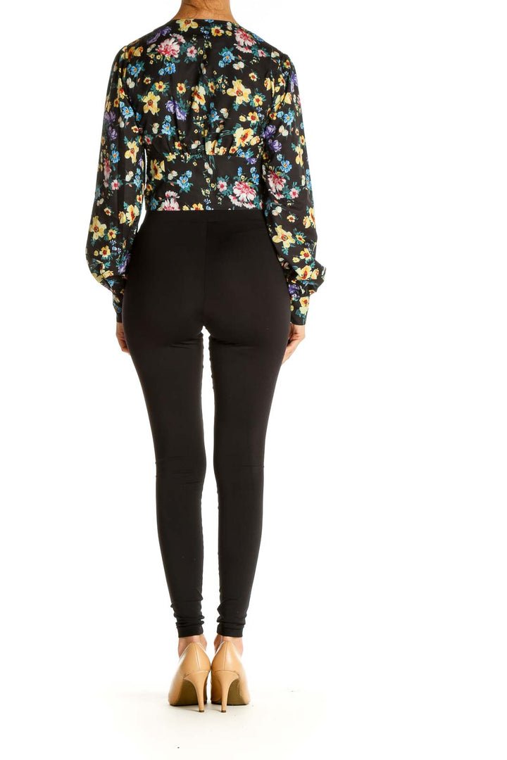 Black Floral Print Retro Blouse