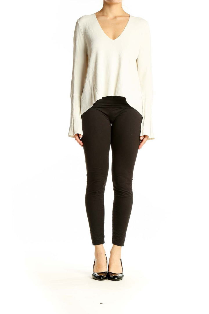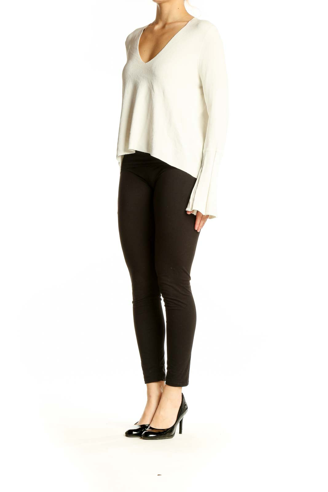 Elevate your casual wardrobe with this chic white V-neck top from ASOS. Crafted from a soft blend of nylon and viscose, this versatile piece offers both comfort and style. The flowing bell sleeves add a touch of elegance to the simple silhouette, making it perfect for various occasions.