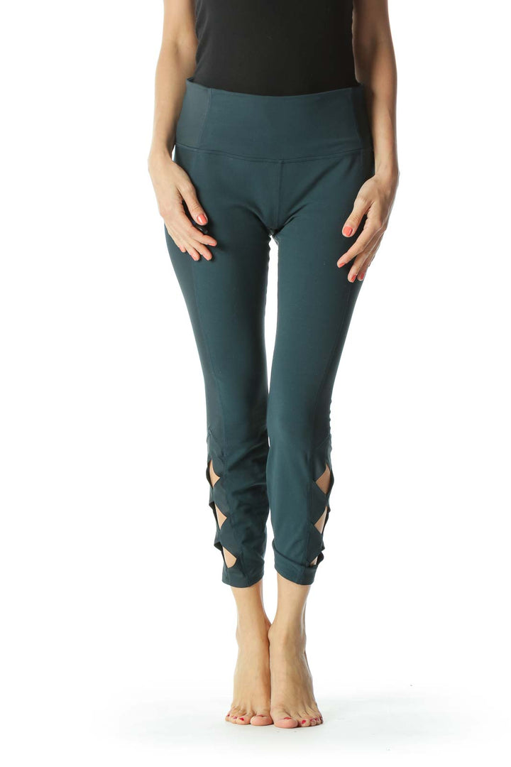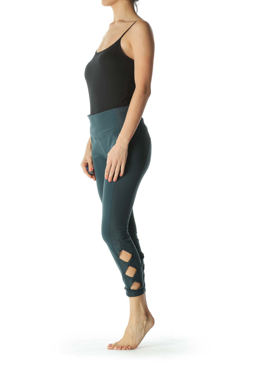 Emerald-Green Leg-Side-Geometric-Detail Leggings