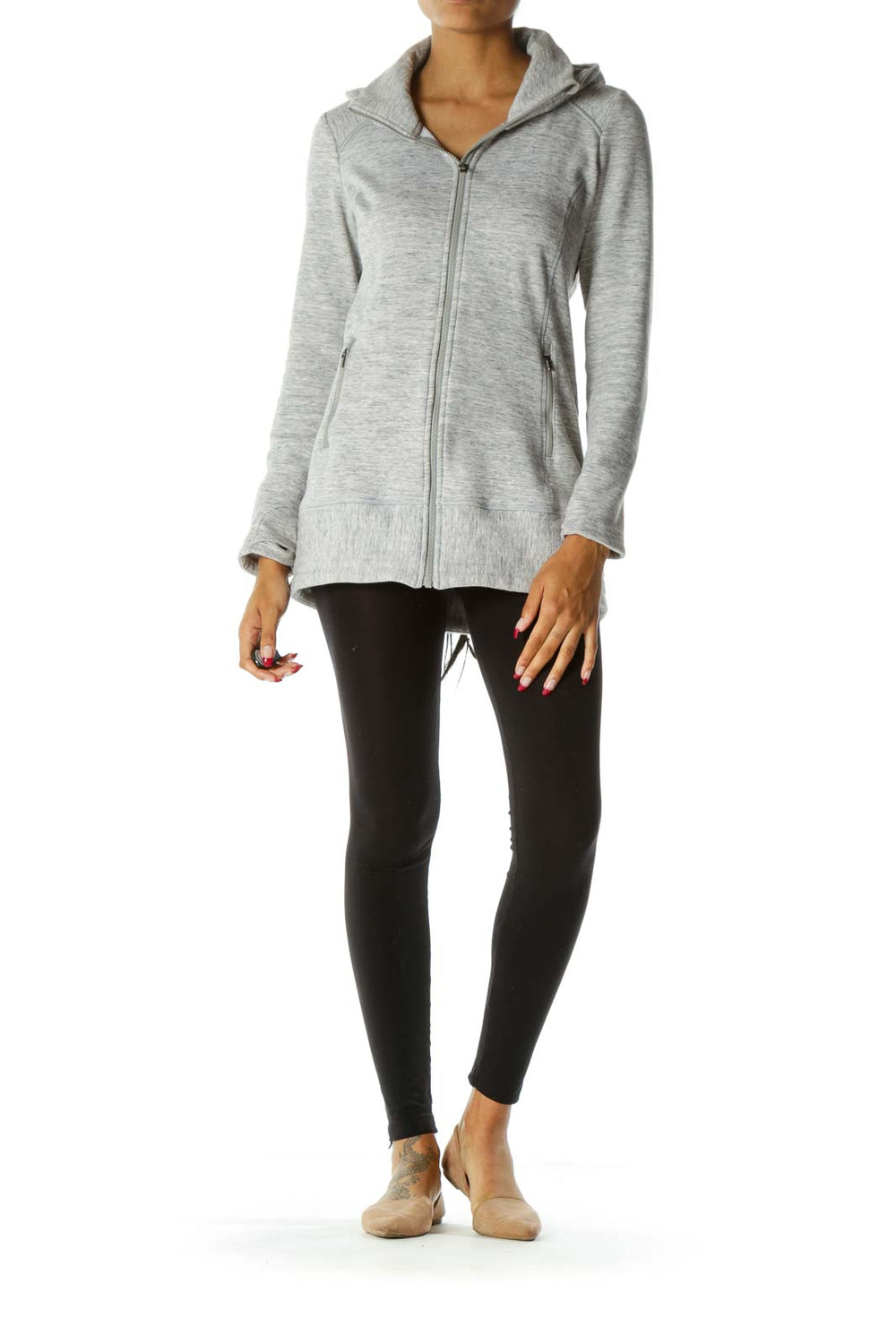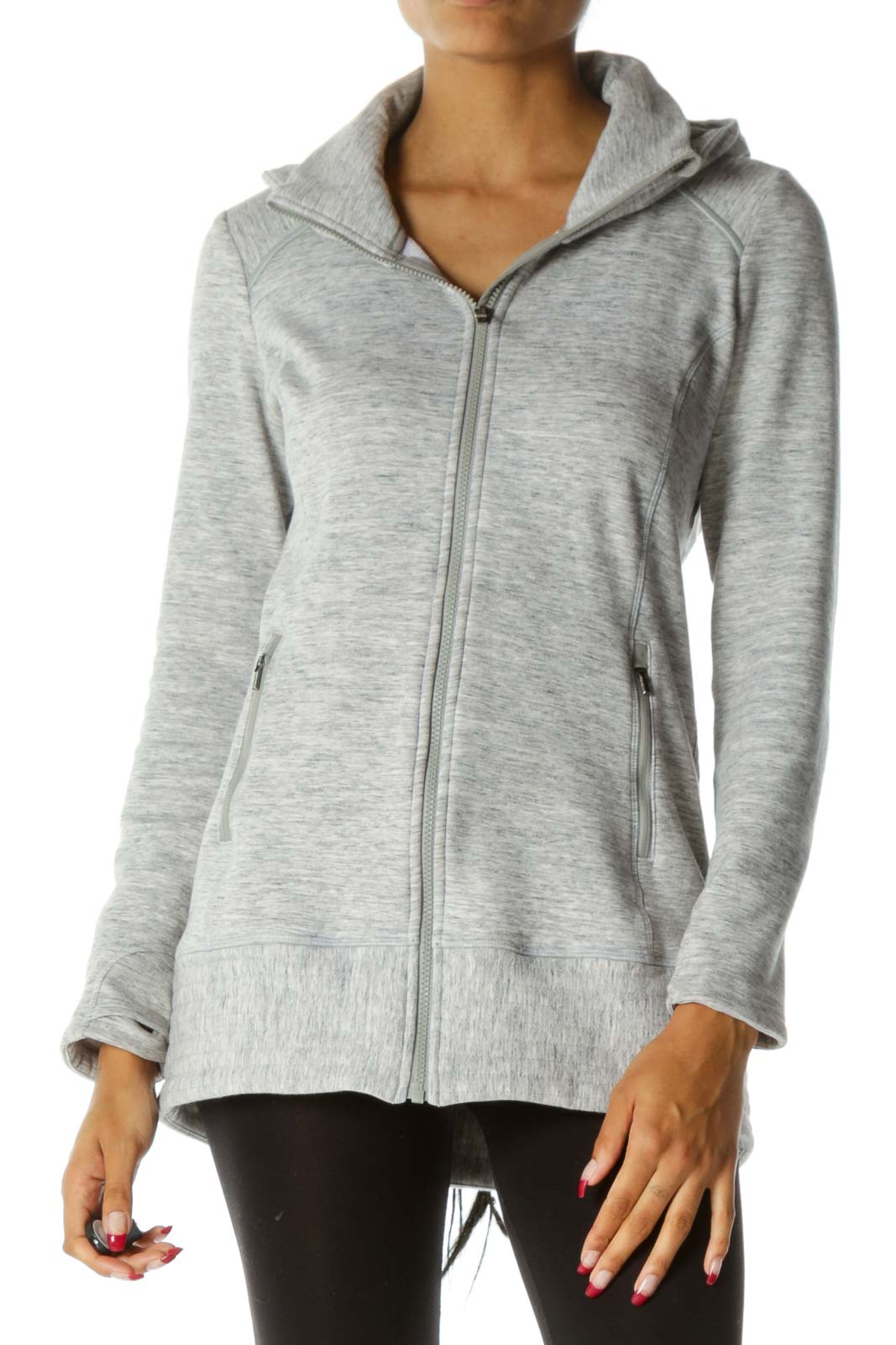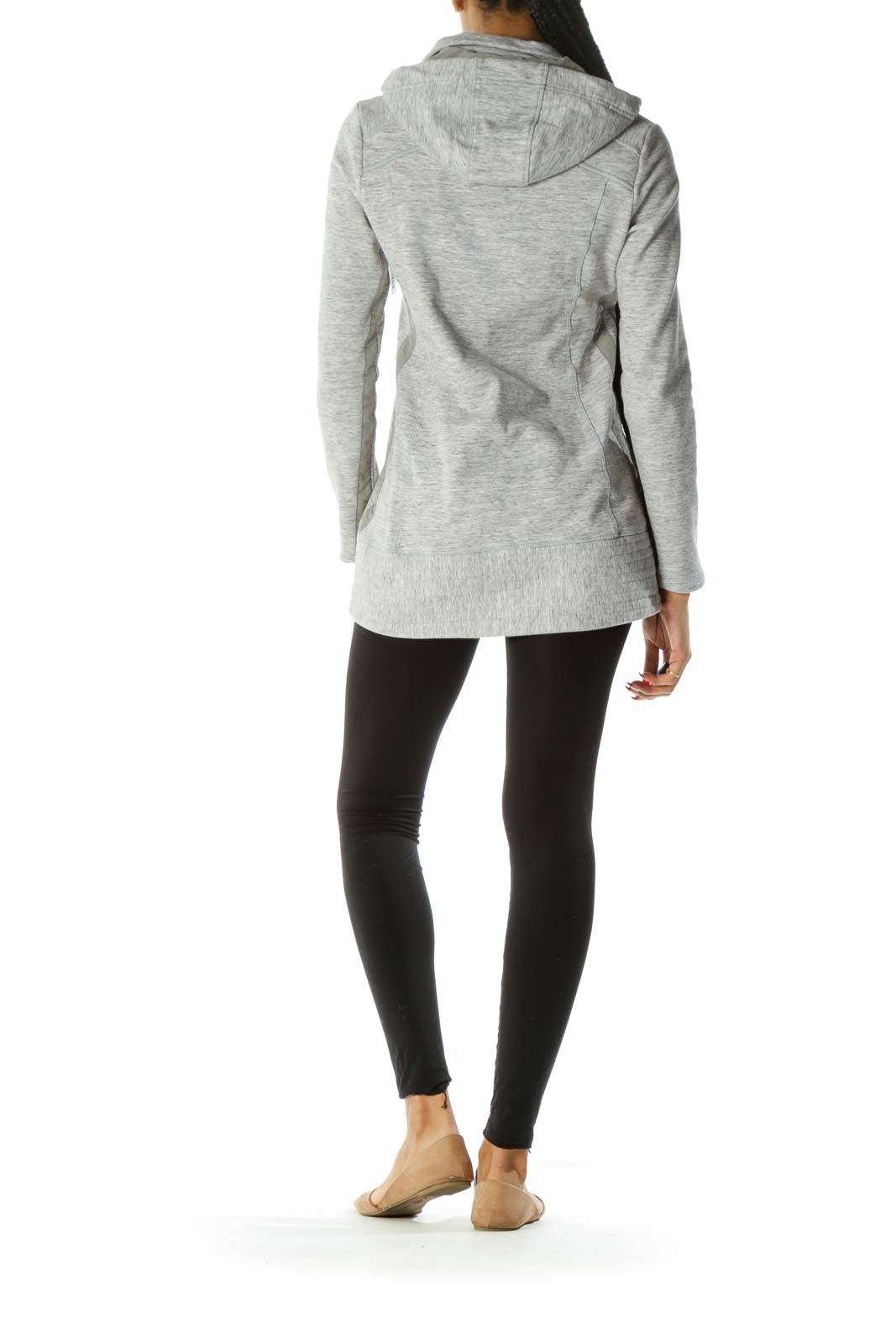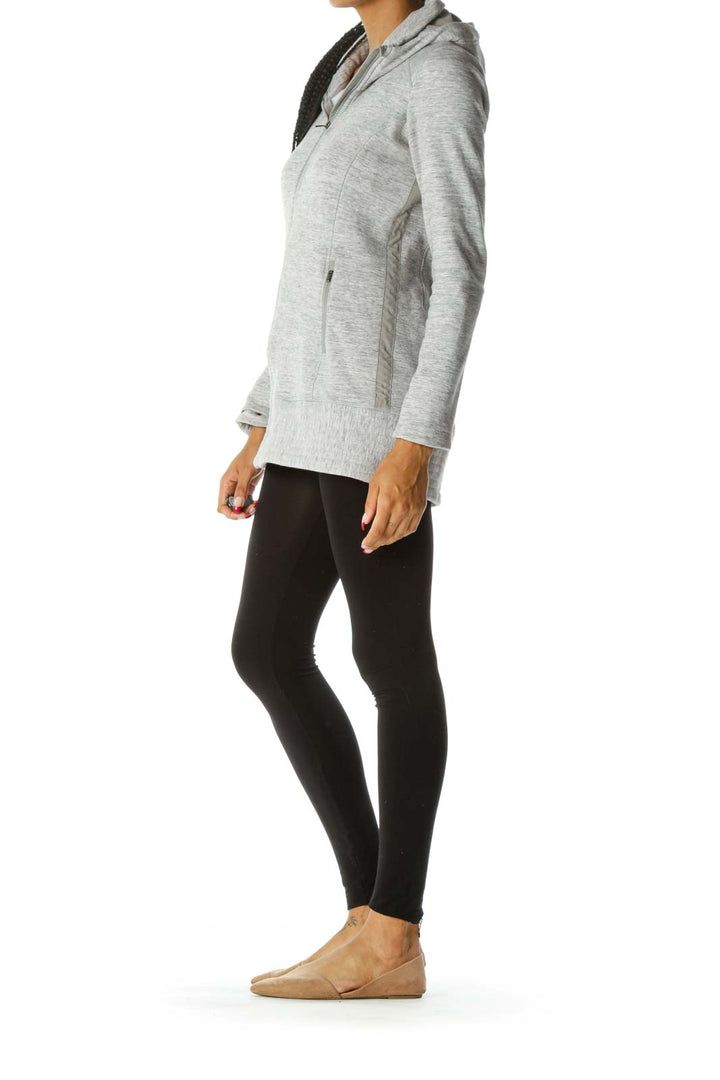 Gray Mottled Print Hooded Zipper Pockets Active Jacket with Reflective Trims