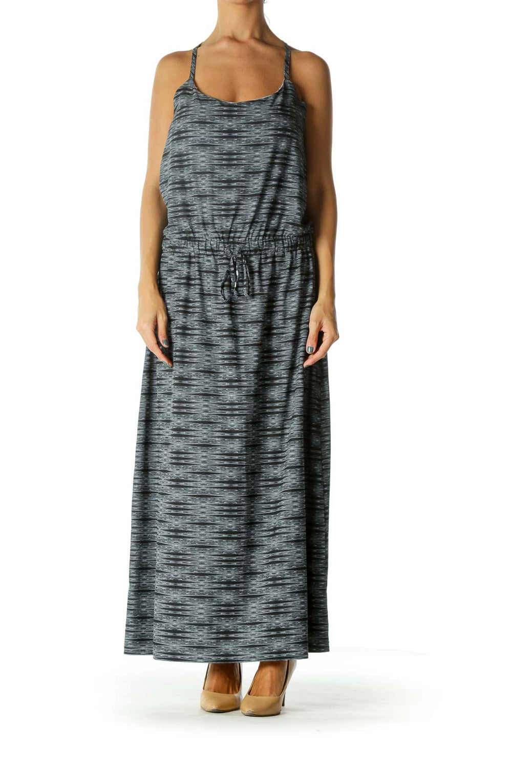 White Black Print Round Neck Sleeveless Elastic Waist Active Dress with Built-In Support