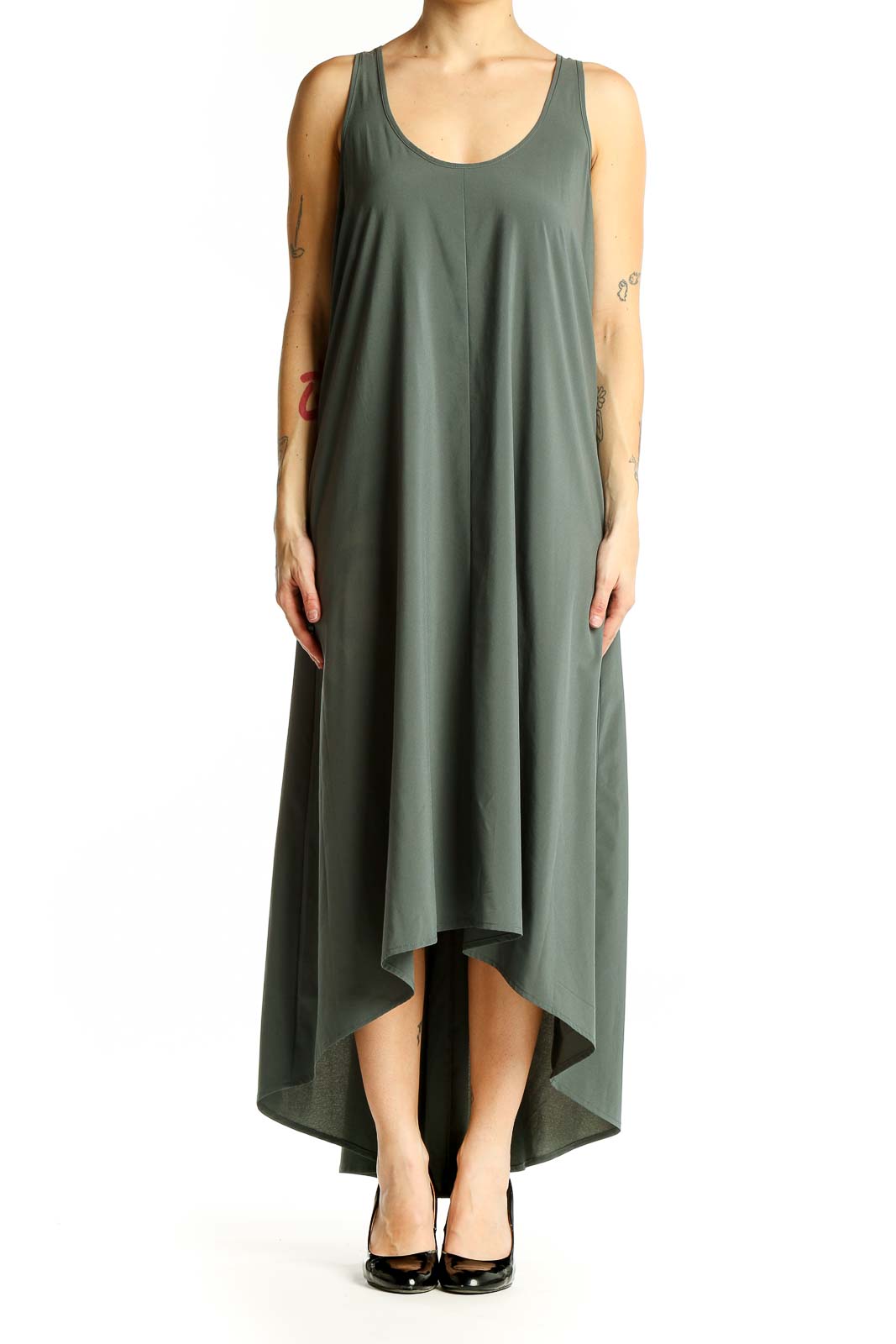 Elevate your casual wardrobe with this stunning olive green high-low maxi dress from Athleta. Crafted from a comfortable blend of polyester and spandex, this dress offers both style and flexibility for all-day wear. The sleeveless design features a flattering scoop neckline and a relaxed, flowy silhouette that drapes beautifully from bust to hem. The high-low hemline adds a touch of drama and movement, perfect for warm weather outings or layering in cooler seasons. With its versatile design, this dress can easily transition from a day at the beach to an evening out with friends. The excellent condition ensures you'll look polished and put-together for any occasion. Embrace effortless elegance with this must-have maxi dress that combines athletic comfort with feminine charm.