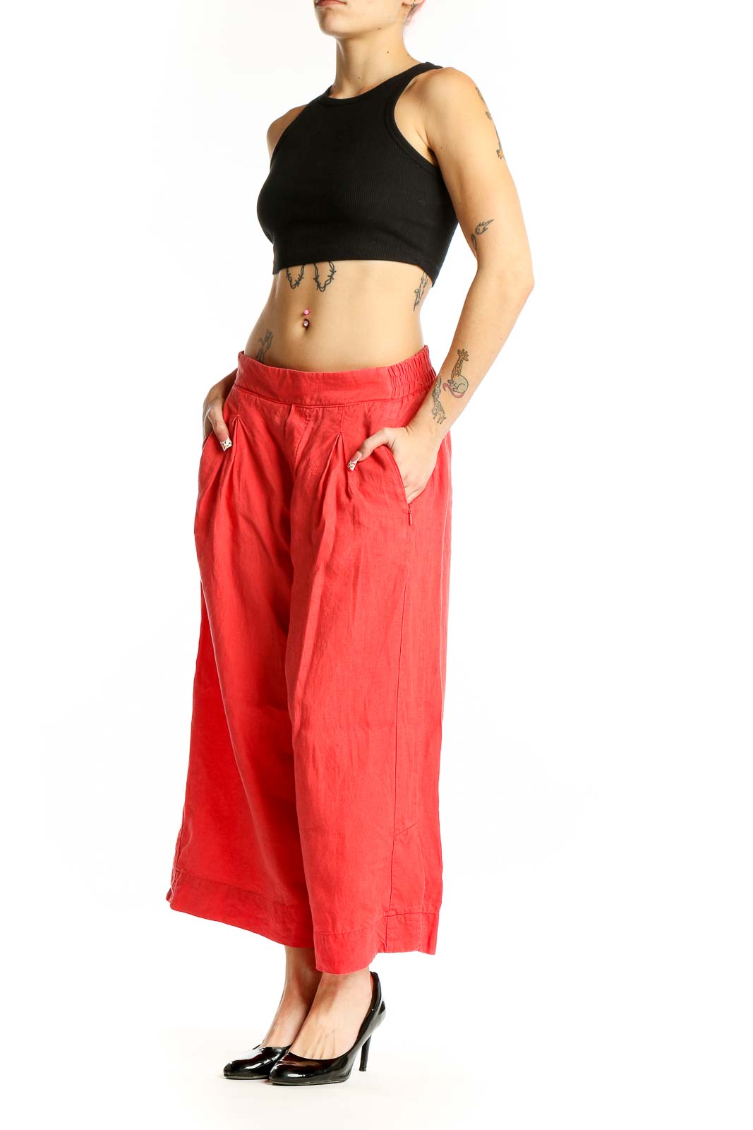 Step into comfort and style with these vibrant red linen wide-leg cropped pants from Athleta. Perfect for warm weather, these pants offer a breezy and relaxed fit that's ideal for both casual outings and light activities. The pleated front adds a touch of sophistication, while the wide-leg silhouette provides ample room for movement. Crafted from breathable linen, they're designed to keep you cool and comfortable all day long. The cropped length hits just above the ankle, making them versatile for various shoe choices. With a mid-rise waist and side pockets, these pants combine practicality with fashion. In good condition, they're a great addition to your summer wardrobe, offering both style and comfort in one chic package.