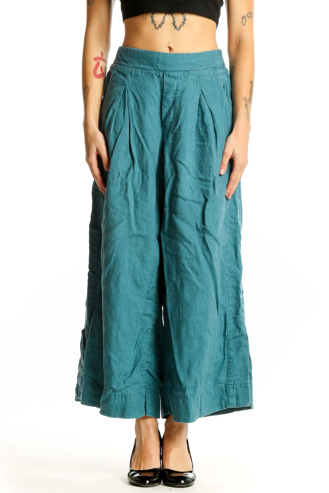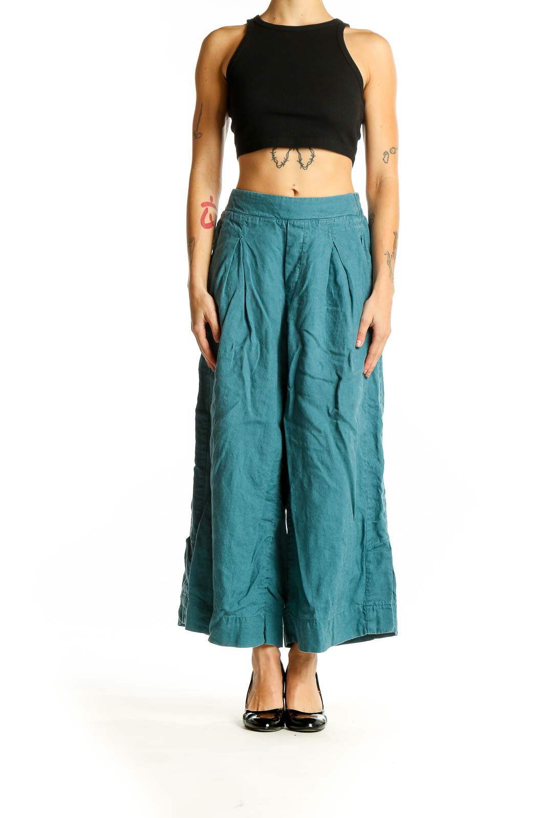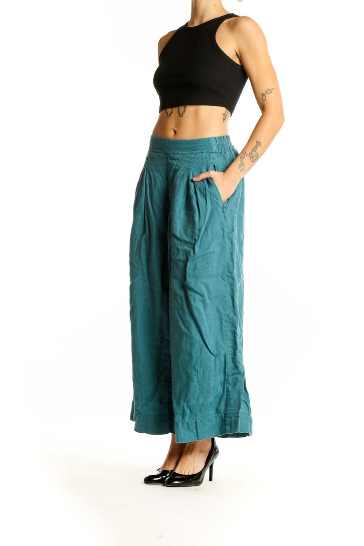 Step into effortless style with these teal linen wide-leg cropped pants from Athleta. Perfect for warm weather, these pants offer a breezy and comfortable fit that's ideal for both casual outings and light activities. The high-waisted design features pleats at the front, adding a touch of sophistication to the relaxed silhouette. Made from 100% linen, these pants provide excellent breathability and a lightweight feel, keeping you cool and comfortable all day long. The wide-leg cut and cropped length create a flattering shape that pairs beautifully with both flats and heels. Side pockets add functionality without compromising the sleek look. In excellent condition, these versatile pants are a must-have addition to your summer wardrobe.