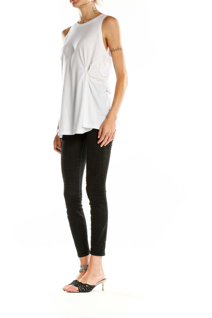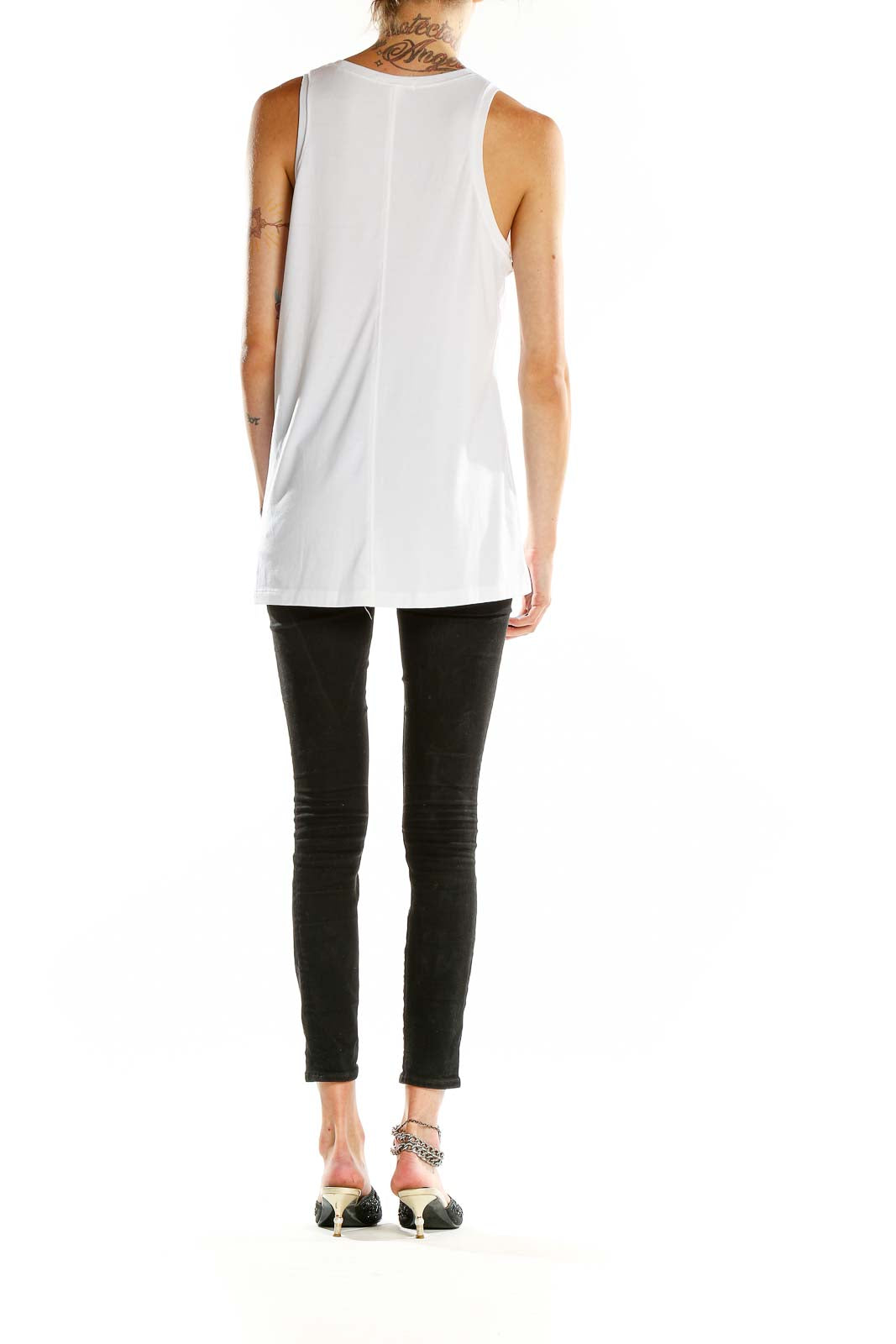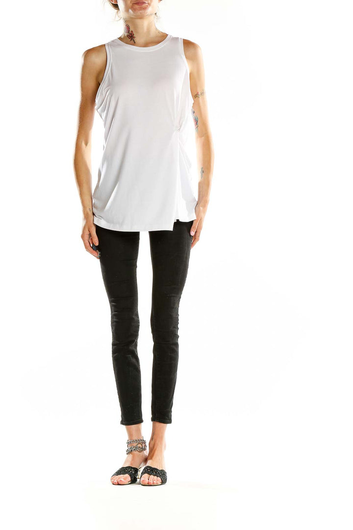 Elevate your workout wardrobe with this pristine white sleeveless tank top from Athleta. Crafted from a luxurious blend of elastane, modal, and polyester, this top offers the perfect balance of comfort and performance. The sleek design features a classic crew neckline and a relaxed fit that allows for unrestricted movement during any activity.