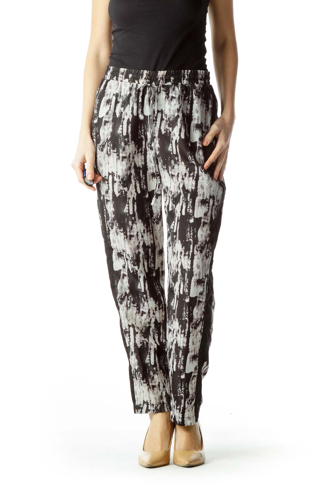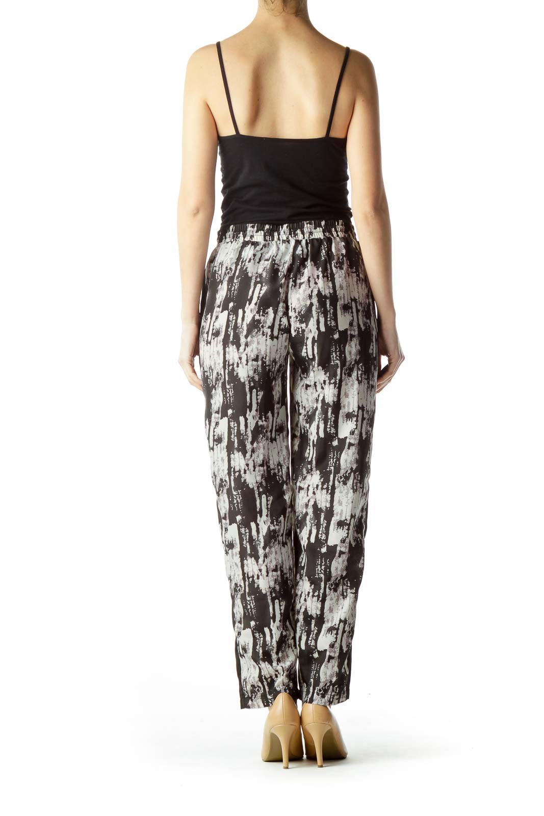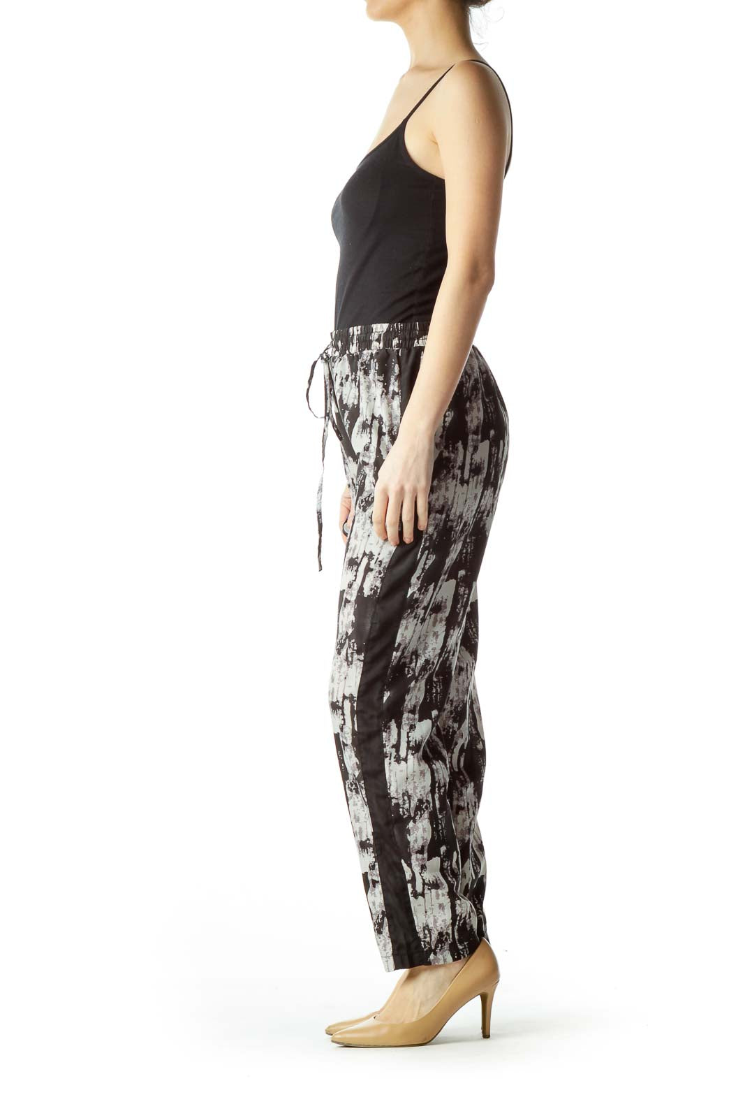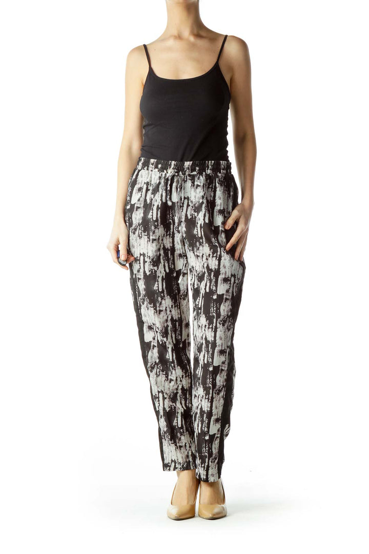 Black Gray Print Straight Leg Pants