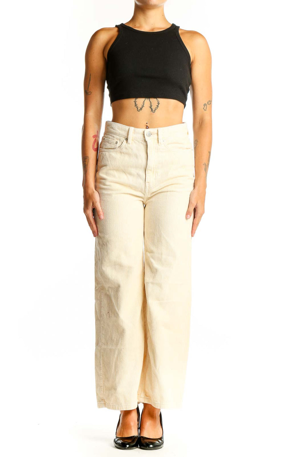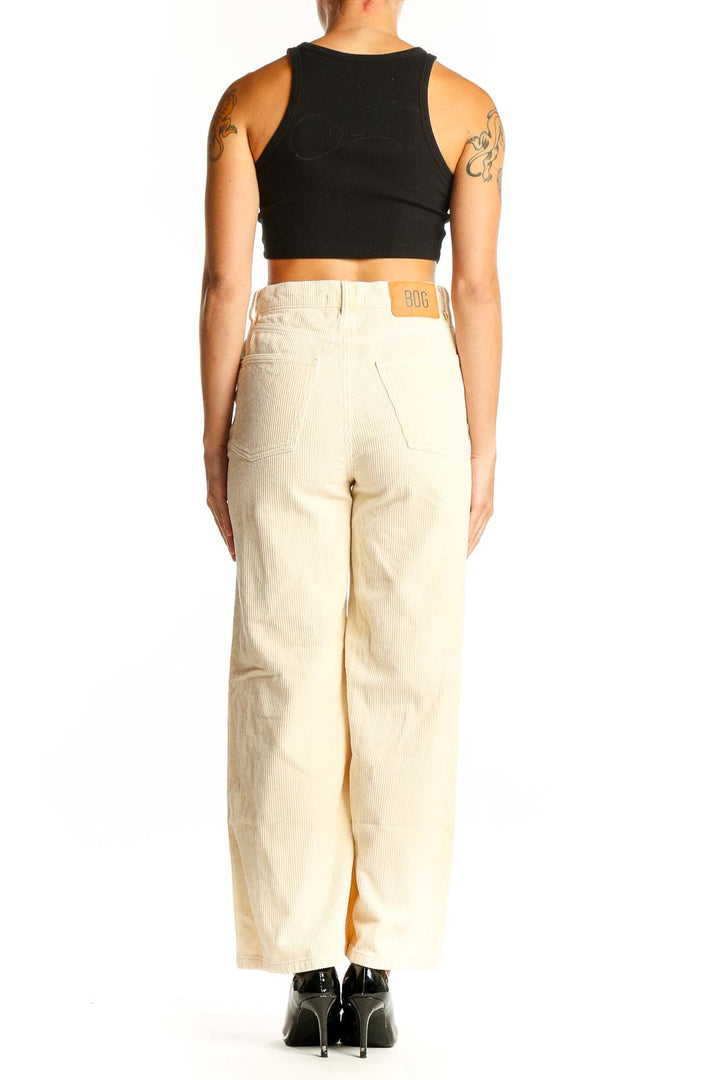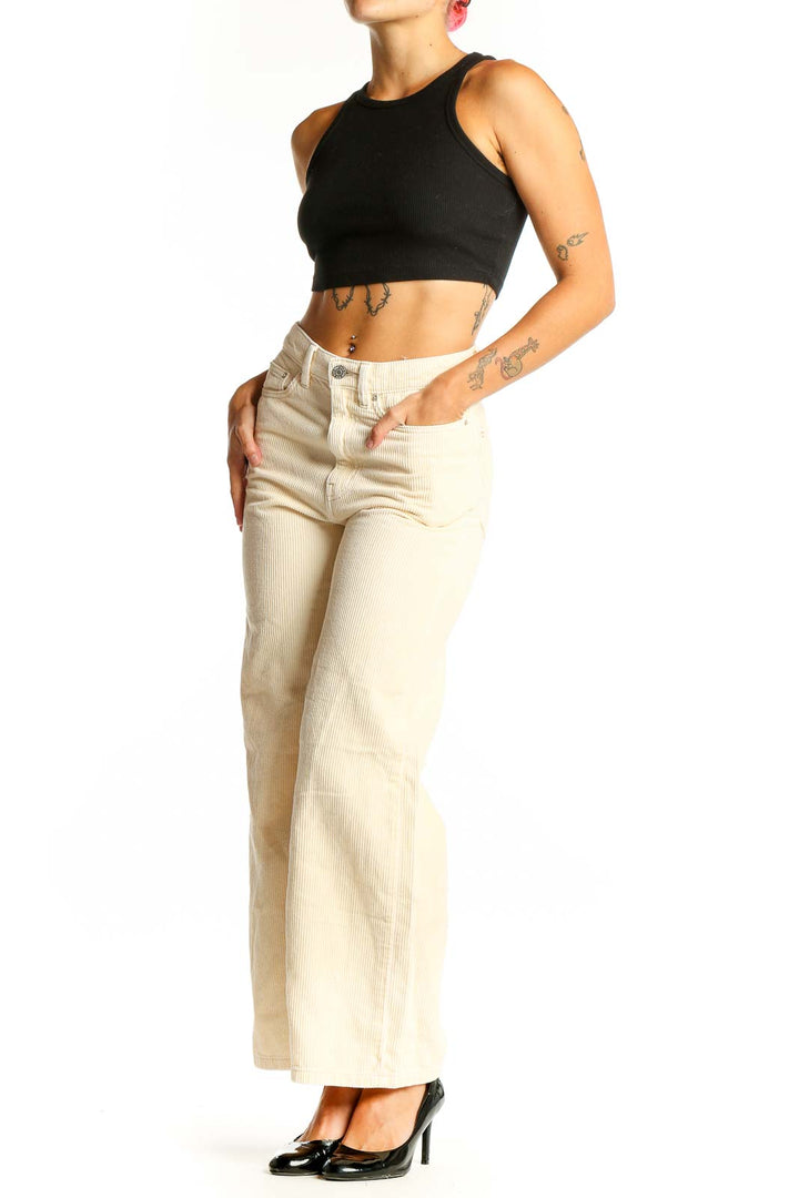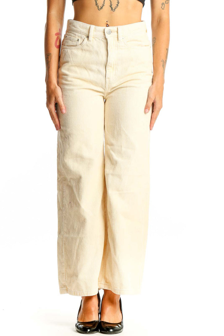 Cream Corduroy Wide-Leg Pants