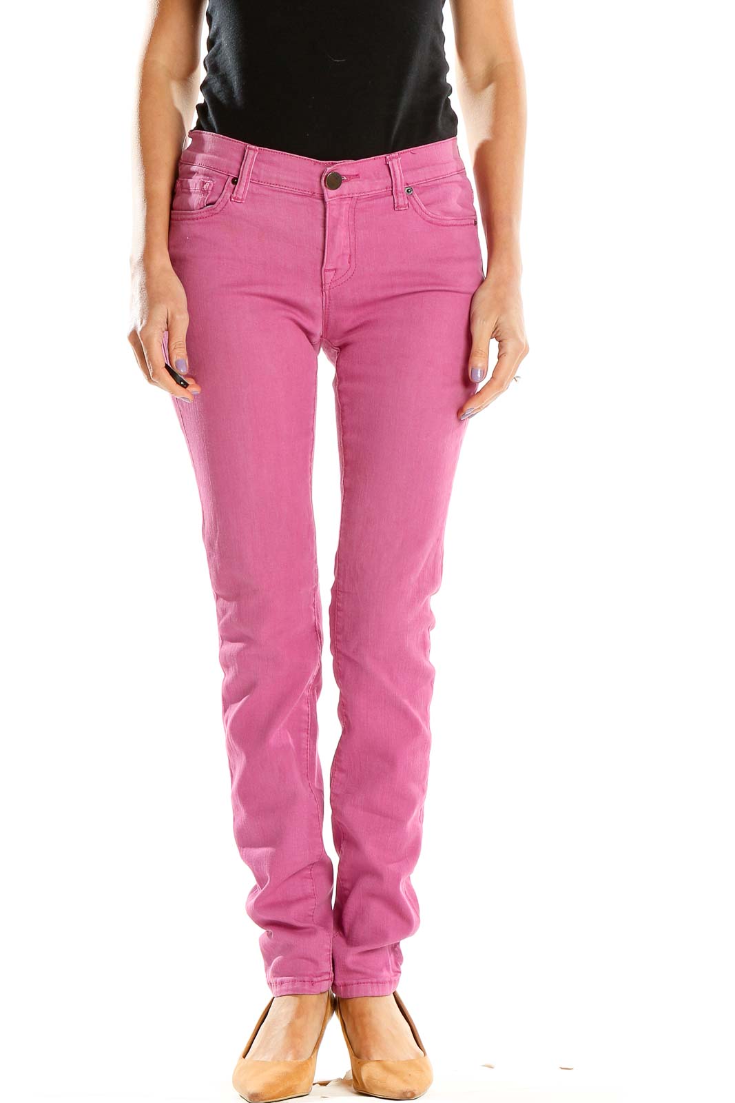 Pink Straight Leg Denim Jeans