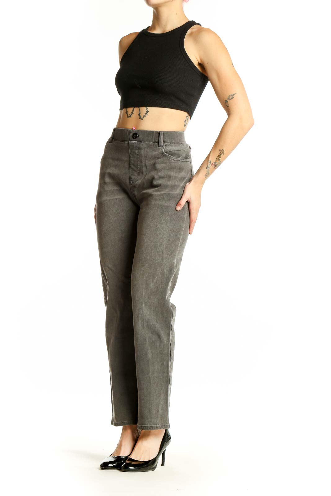 Featuring a mid-rise waist and full-length legs, these jeans offer a flattering fit for various body types. The gray wash adds a modern twist to traditional denim, making these pants perfect for both casual and semi-formal occasions. With practical details like front and back pockets, these jeans combine fashion with functionality.