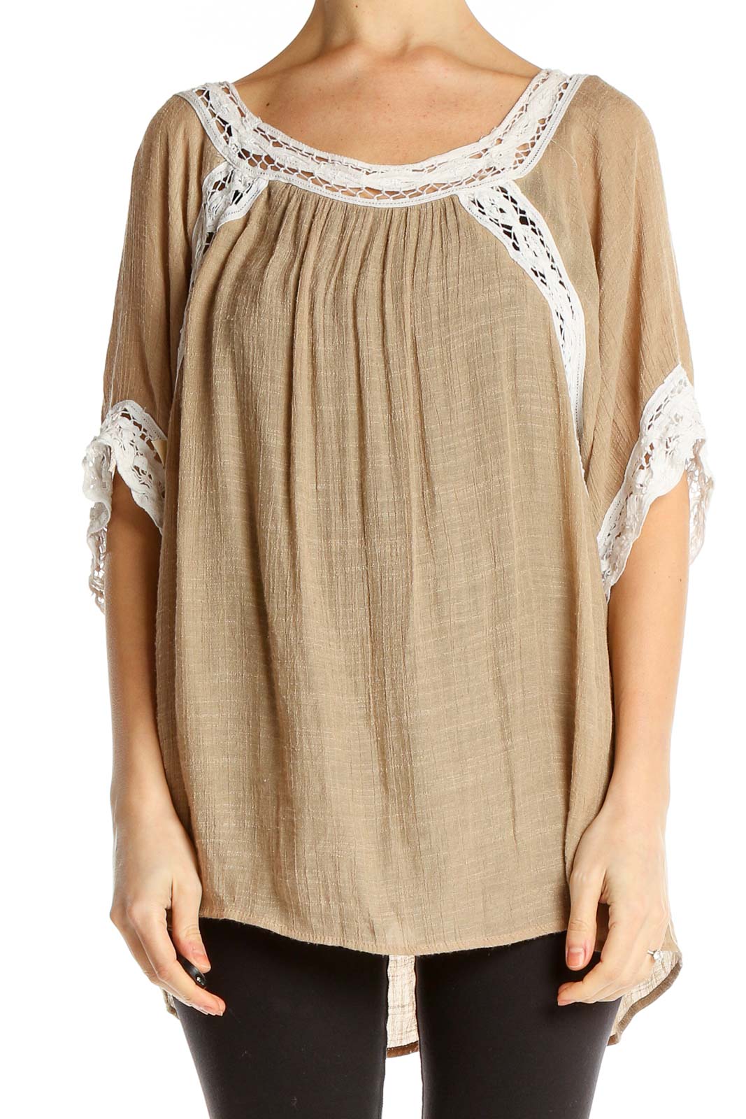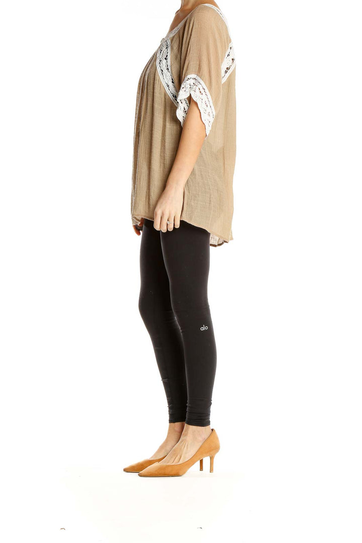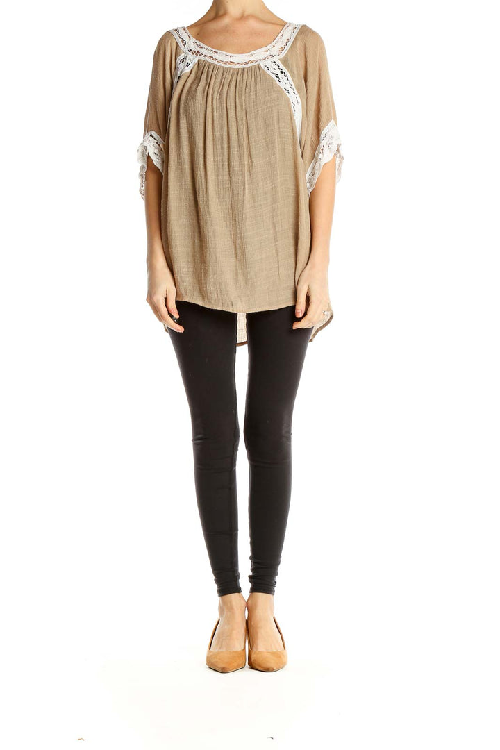 Elevate your casual wardrobe with this stunning beige tunic top from Umgee. This flowy, oversized piece features delicate white lace trim along the neckline and sleeves, adding a touch of bohemian elegance to its relaxed silhouette. The lightweight, semi-sheer fabric drapes beautifully, creating a flattering and comfortable fit for all body types.