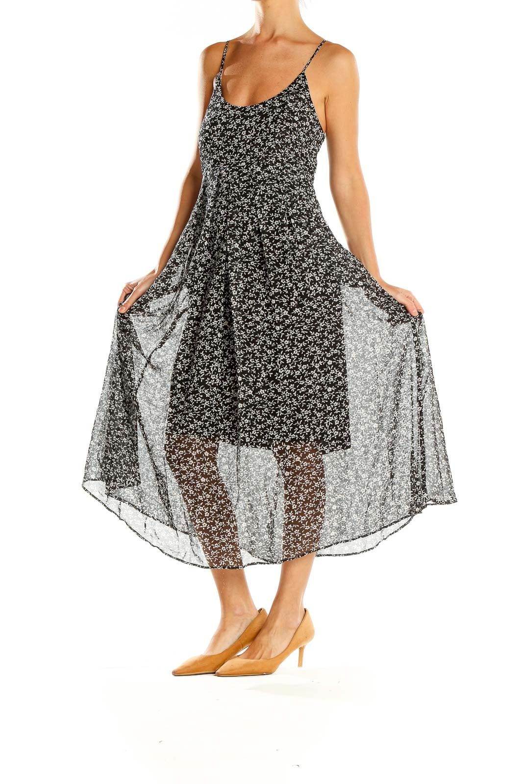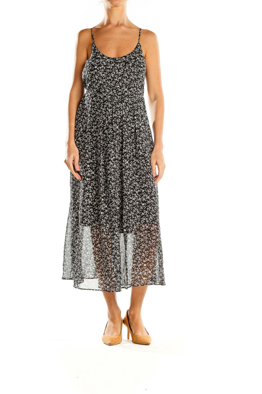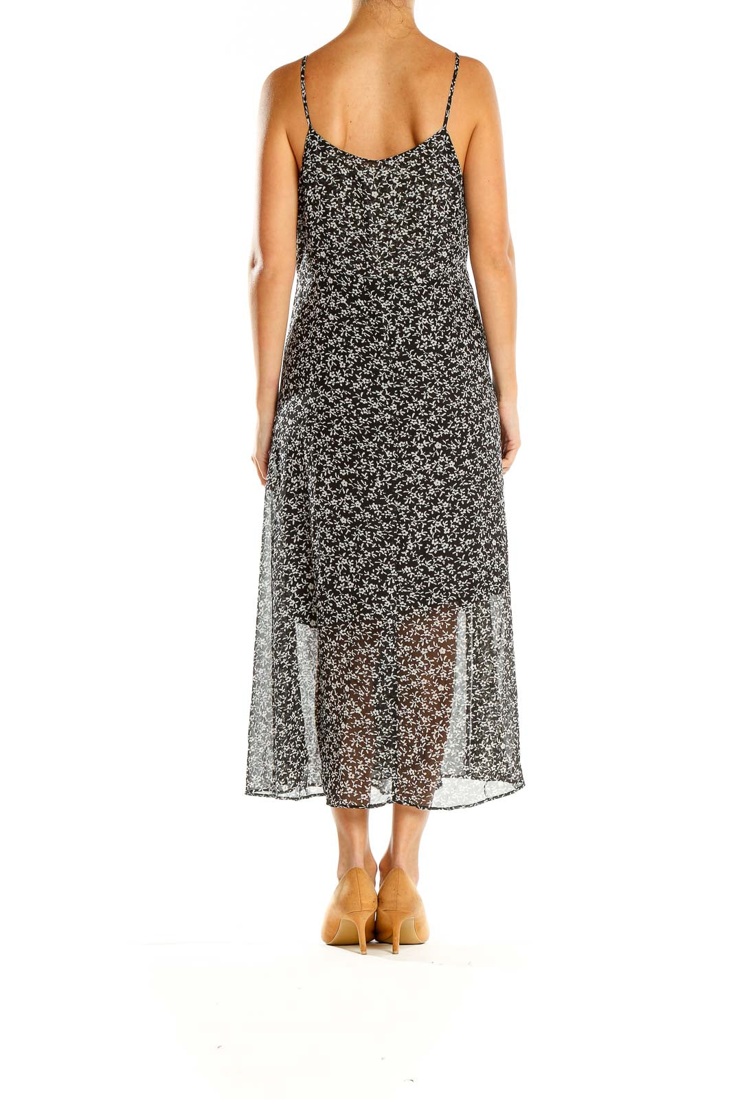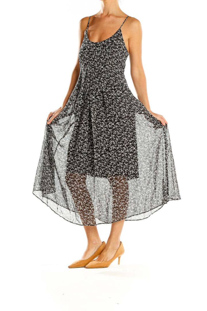 Elevate your wardrobe with this charming black floral print midi dress from Mango (MNG). Perfect for both casual outings and semi-formal events, this dress features a delicate all-over floral pattern that adds a touch of femininity to its sleek silhouette. The spaghetti straps and scoop neckline create a flattering look, while the flowy skirt offers comfortable movement.