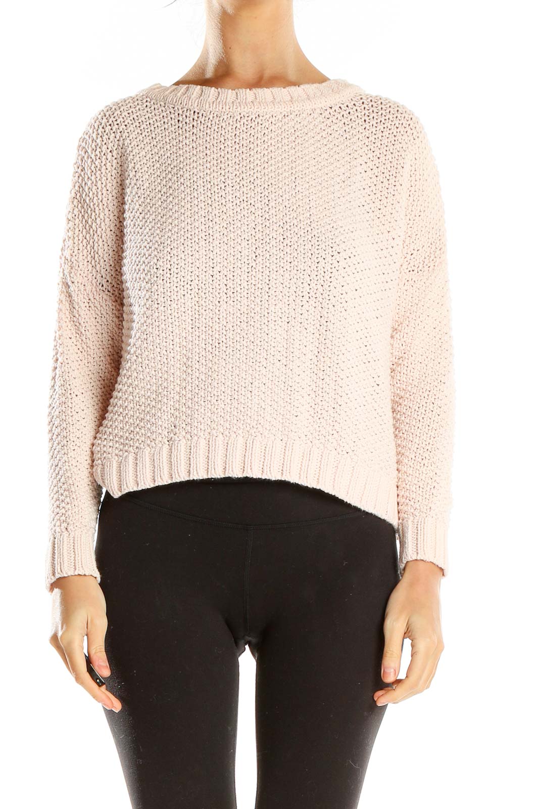 Elevate your casual wardrobe with this chic blush-colored chunky knit sweater from Mango (MNG). This cozy piece features a relaxed, cropped silhouette that's perfect for layering or wearing on its own. The thick, textured knit adds depth and interest to the design, while the soft blush hue brings a touch of feminine charm to your look. With its boat neckline and long sleeves, this sweater offers both style and comfort. The ribbed trim at the neckline, cuffs, and hem provides a polished finish. In excellent condition, this versatile XS-sized sweater is a must-have for your cool-weather wardrobe. Pair it with high-waisted jeans or a skirt for an effortlessly chic ensemble.