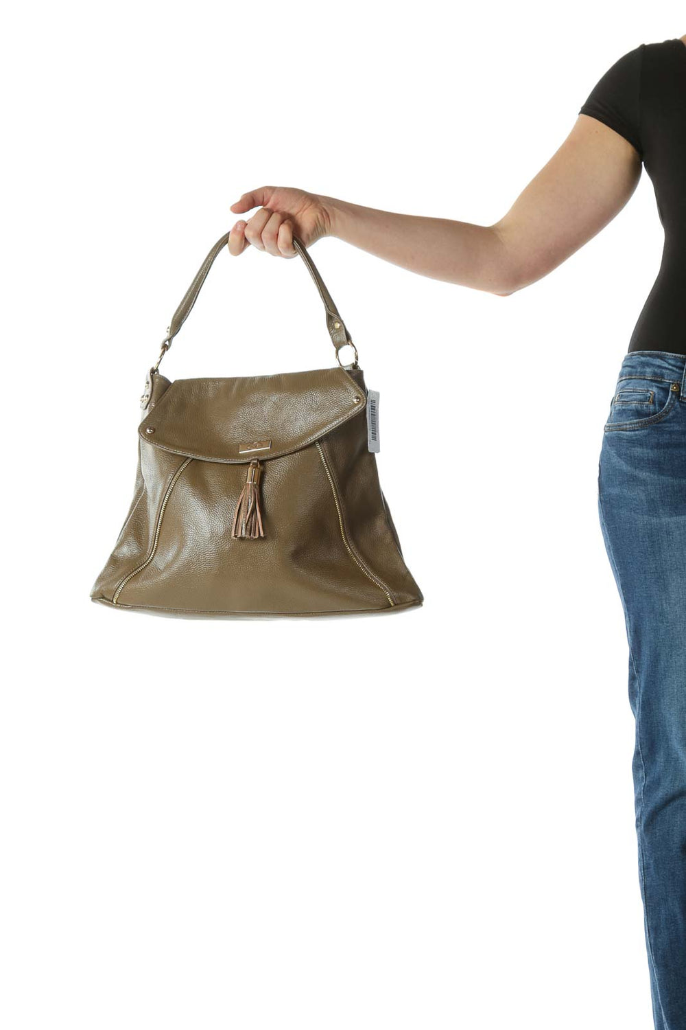 Olive Designer Tassel Shoulder Bag with Zipper and Hardware Embellishments