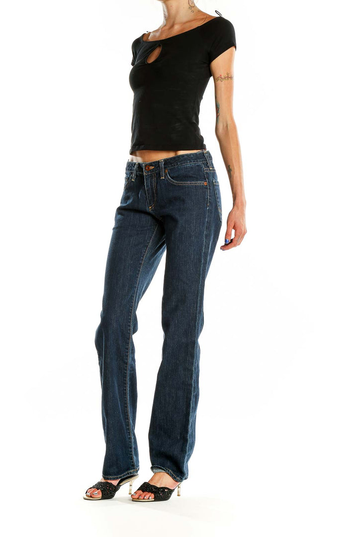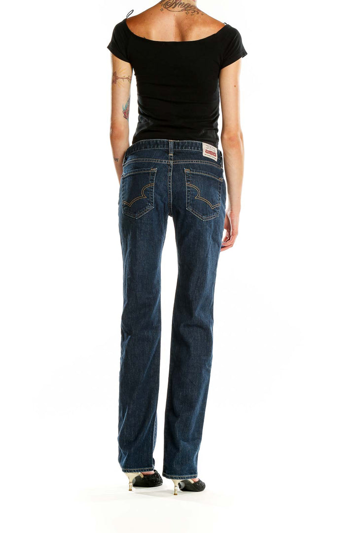 Step into timeless style with these dark blue straight leg jeans from Big Star. Crafted from a comfortable blend of cotton, polyester, rayon, and spandex, these jeans offer both durability and stretch for all-day wear. The classic straight leg silhouette flatters various body types and pairs effortlessly with any top in your wardrobe. Features include traditional five-pocket styling and subtle contrast stitching that adds a touch of interest. With a mid-rise waist and a 31-inch inseam, these jeans hit at just the right length for a versatile look. The excellent condition ensures you'll enjoy these Big Star jeans for seasons to come.