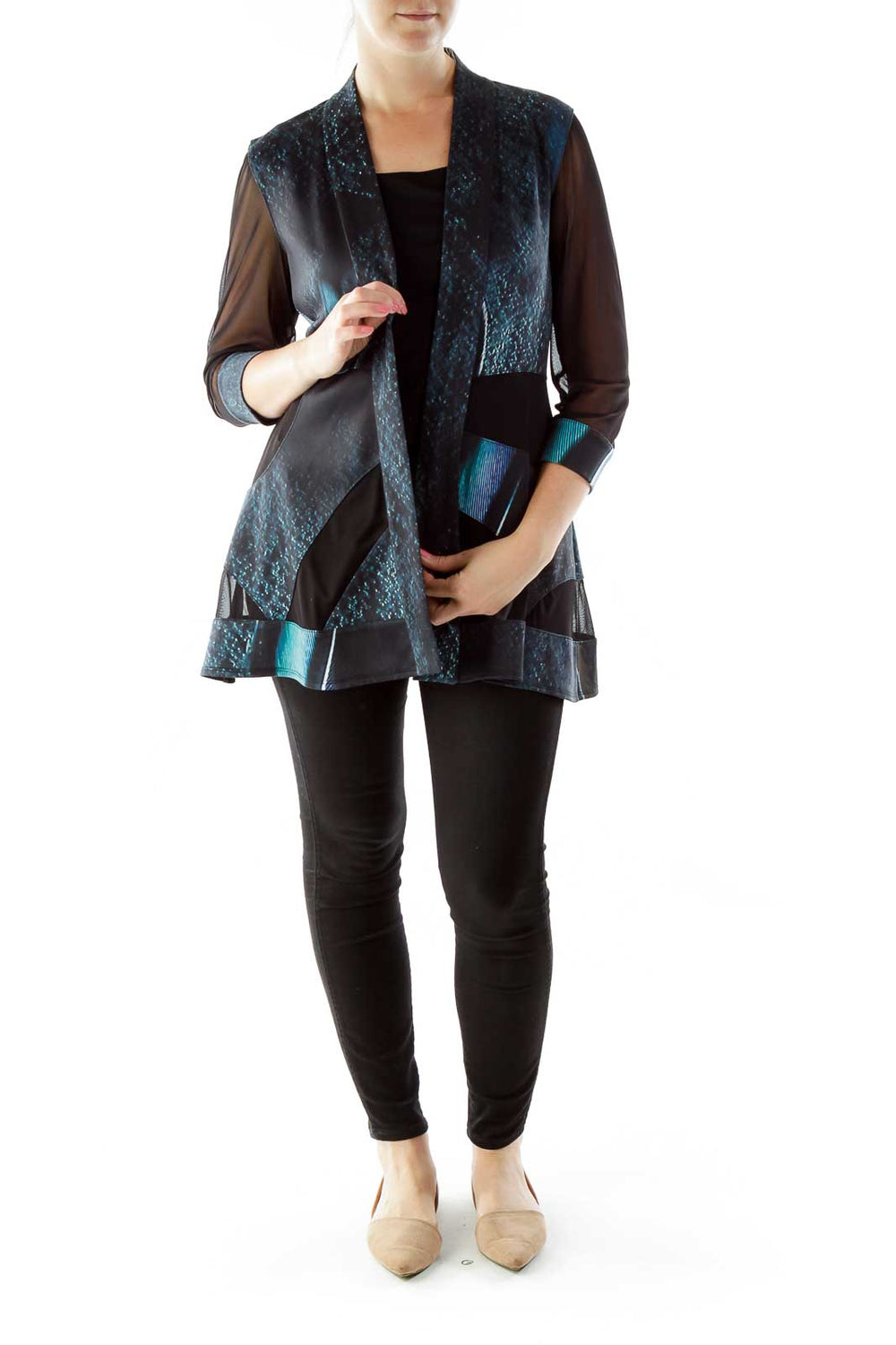 Green Black See-Through Open Jacket