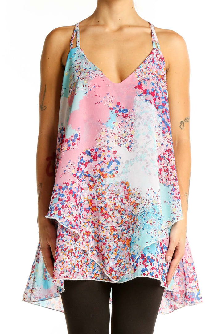 Embrace the beauty of spring with this enchanting pastel floral print tank top from SilkRoll. This flowy, sleeveless top features a stunning watercolor-inspired pattern in soft shades of pink, blue, and white, creating a dreamy, ethereal look. The lightweight fabric blend of polyester, rayon, and spandex ensures comfort and ease of movement, perfect for warm days or layering.