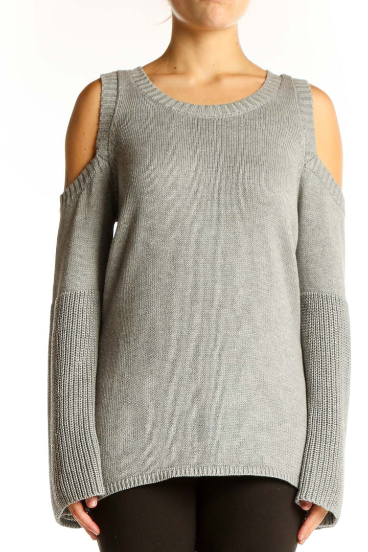 Elevate your casual wardrobe with this chic gray cold shoulder knit sweater from Boston Proper. This stylish piece features a trendy cut-out design at the shoulders, adding a touch of allure to a classic silhouette. The ribbed neckline, cuffs, and hem provide a polished finish, while the long bell sleeves offer a fashionable flair.