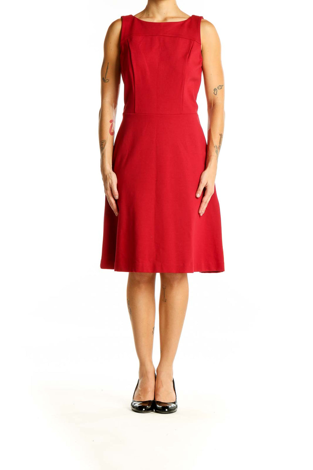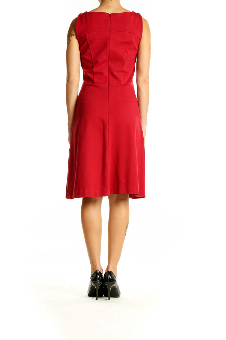 Make a stunning entrance in this vibrant red sleeveless cocktail dress from Brooks Brothers. Crafted from a luxurious blend of nylon, rayon, and spandex, this dress offers both comfort and style. The A-line silhouette flatters your figure, while the boat neckline adds a touch of elegance. The dress features a fitted bodice that accentuates your waist before flowing into a graceful knee-length skirt. Perfect for cocktail parties, evening events, or any occasion that calls for sophisticated charm. The excellent condition of this dress ensures you'll look impeccable from the moment you slip it on. With its versatile design and timeless appeal, this Brooks Brothers dress is sure to become a favorite in your wardrobe.