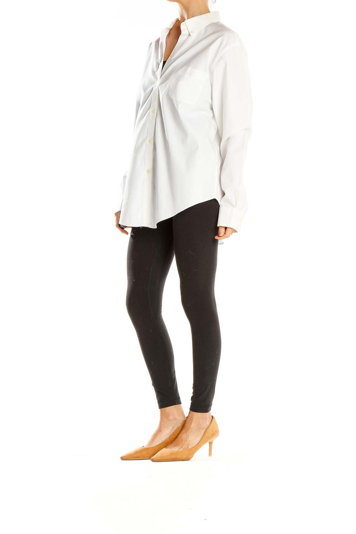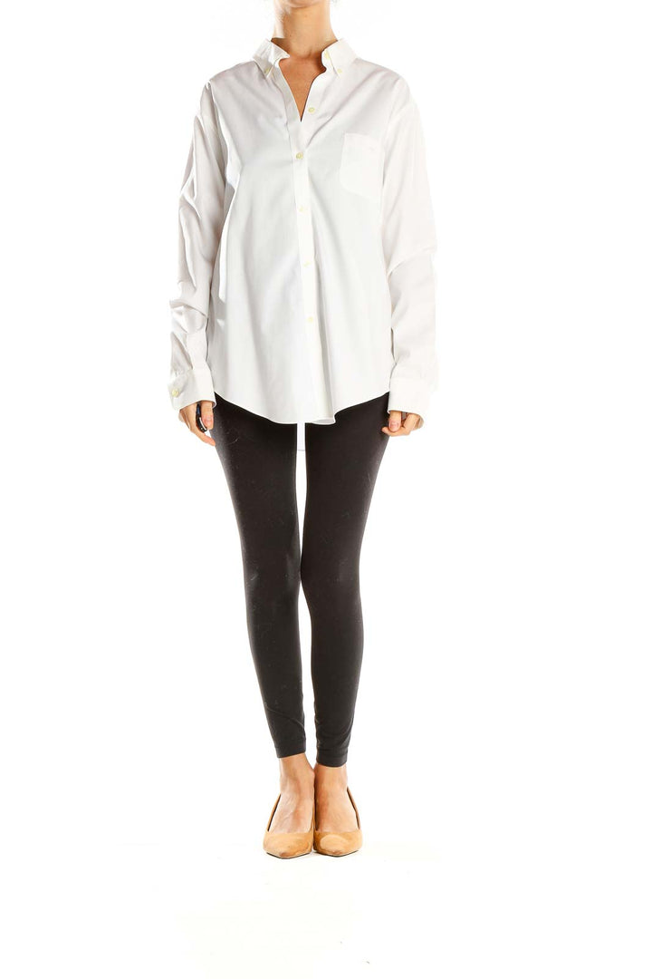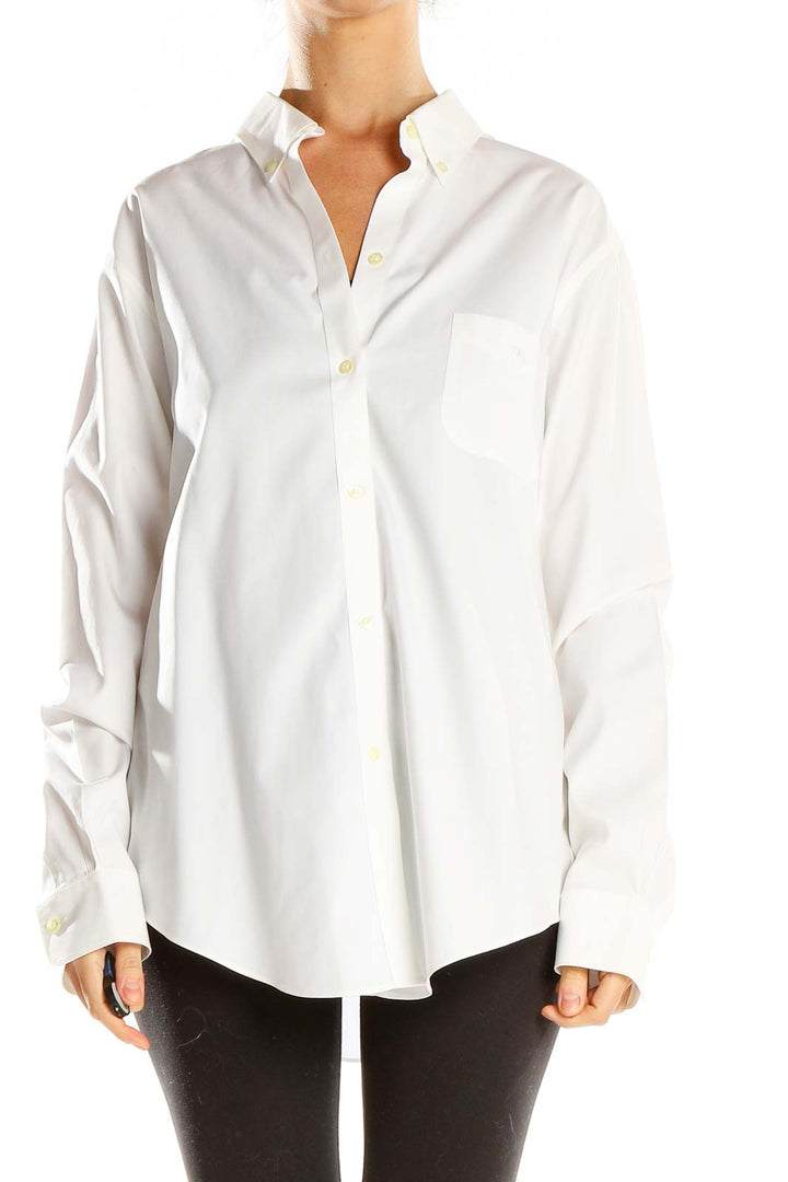 Elevate your wardrobe with this timeless white button-down shirt from Brooks Brothers. Crafted with meticulous attention to detail, this versatile top exudes sophistication and style. The crisp white fabric offers a clean, polished look that's perfect for both professional and casual settings. Featuring a classic collar, long sleeves with buttoned cuffs, and a convenient chest pocket, this shirt embodies the essence of refined simplicity. The relaxed fit ensures comfort throughout the day, while the high-quality construction promises durability. In good condition, this XXL shirt boasts generous measurements with a 40" bust, 42" waist, and 27" length, making it an ideal choice for those seeking a comfortable yet stylish option. Whether paired with tailored trousers for the office or dressed down with jeans for a weekend outing, this Brooks Brothers shirt is a versatile staple that will serve you well for years to come.