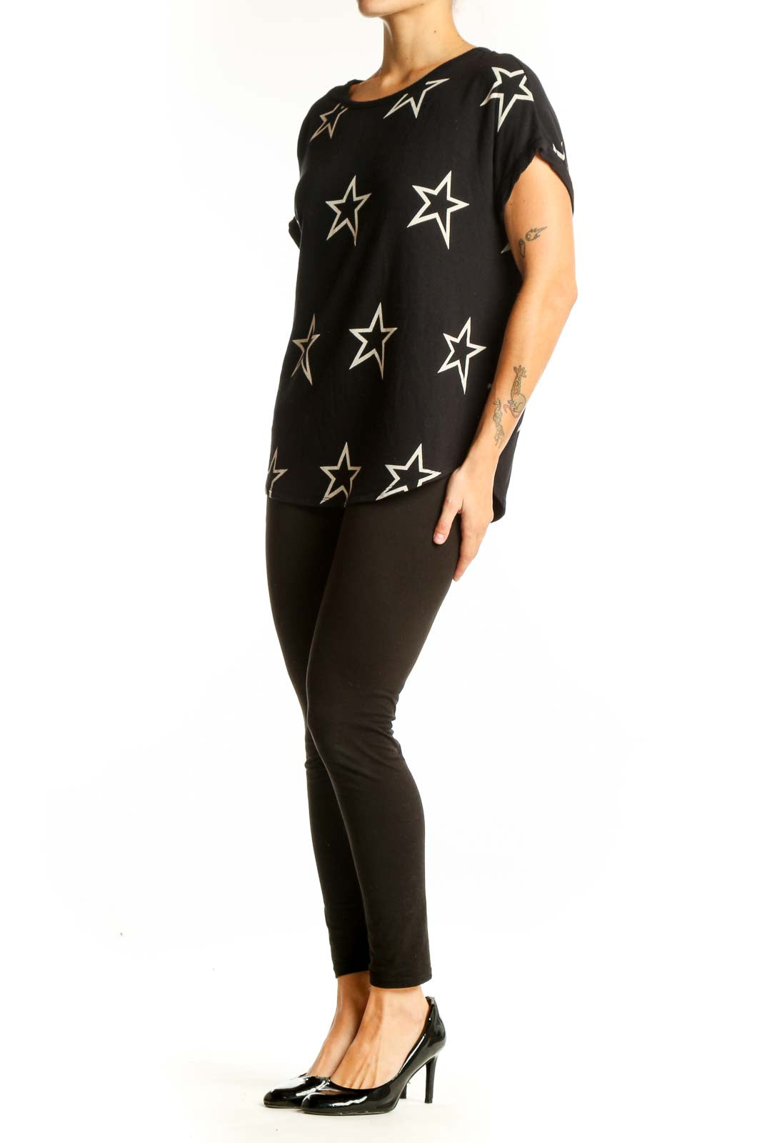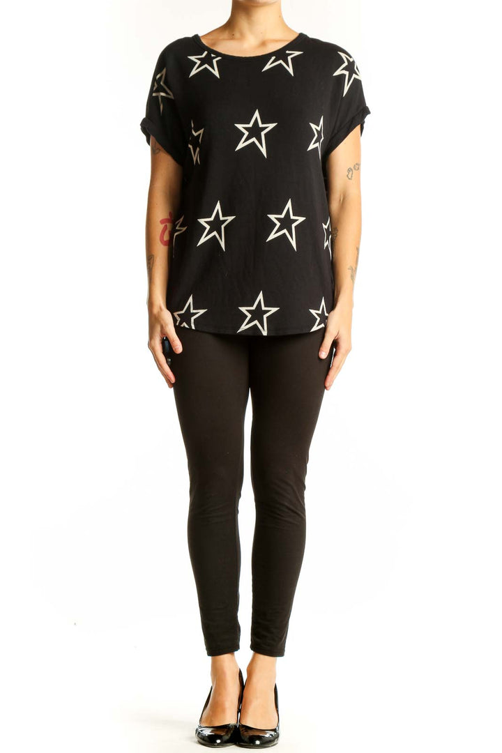 Black Star Print Short Sleeve Top
