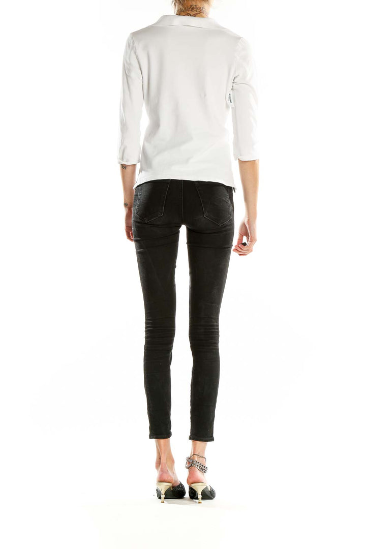Featuring a classic collar and a three-button placket, this polo shirt offers a refined yet relaxed silhouette. The three-quarter length sleeves add a touch of elegance, making it suitable for various occasions. The shirt's good condition speaks to its quality and durability, ensuring it will remain a staple in your closet for seasons to come.
