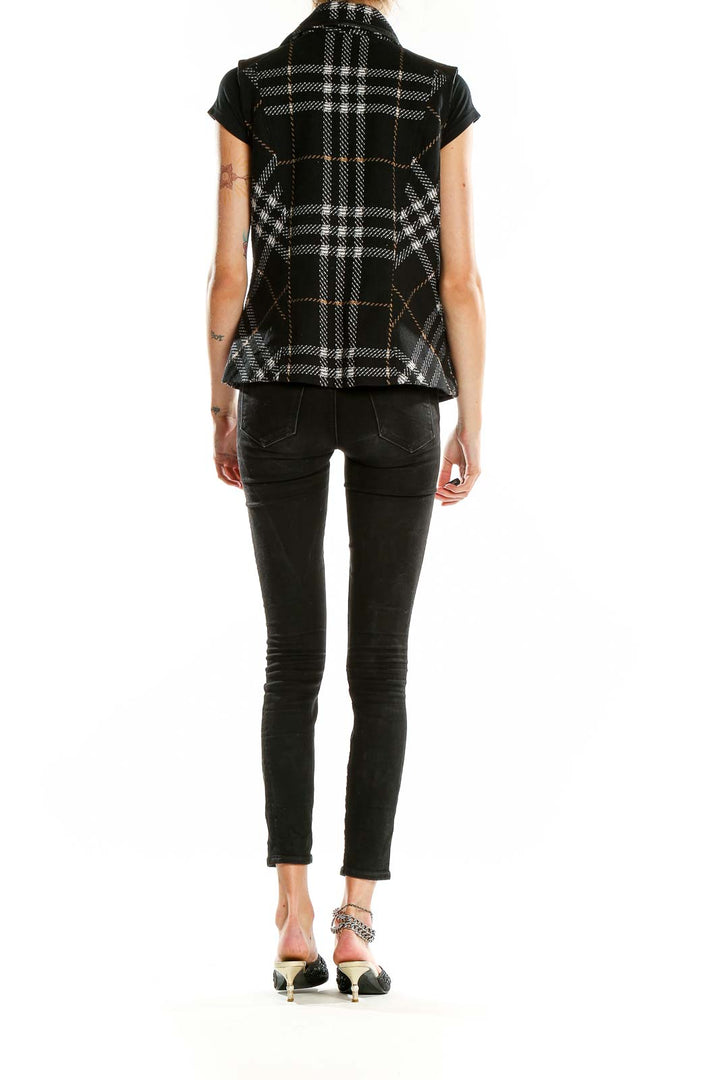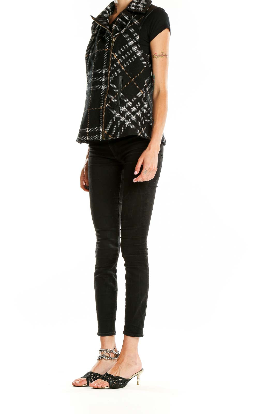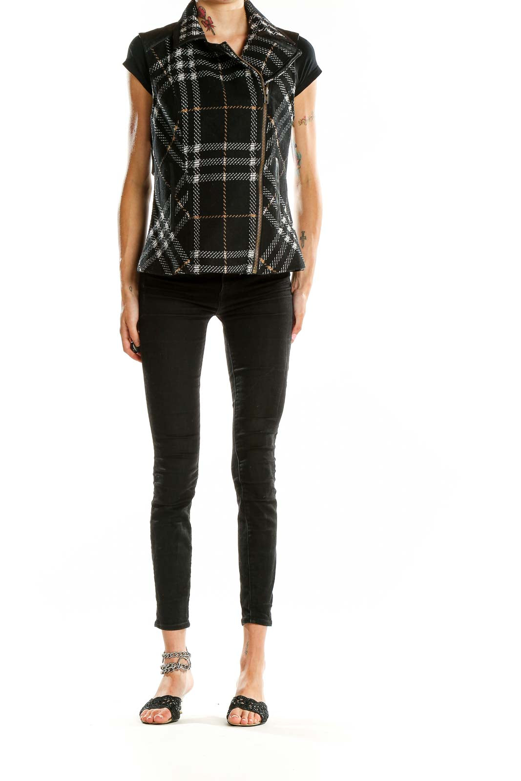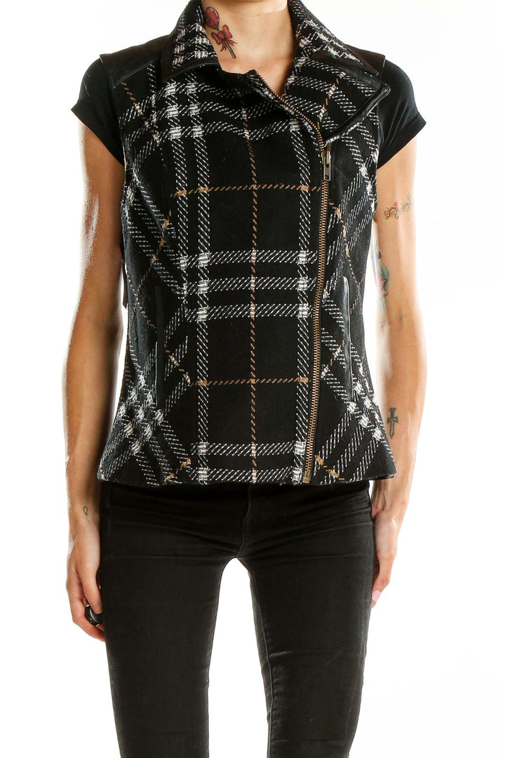 Make a bold statement with this chic Black Plaid Asymmetrical Zip Vest from Cabi. This sleek vest features a striking black and white plaid pattern, adding a touch of sophistication to any outfit. The asymmetrical zipper closure adds a modern, edgy twist to the classic vest silhouette. Crafted from a luxurious blend of acrylic, cotton, nylon, polyester, rayon, and wool, this vest offers both style and comfort. The versatile design allows for easy layering over your favorite tops or under a jacket for added warmth. With its excellent condition and flattering fit (bust 36", waist 34", hips 40", length 23"), this Cabi vest is perfect for both casual and semi-formal occasions. Elevate your wardrobe with this must-have piece that effortlessly combines timeless plaid with contemporary design.