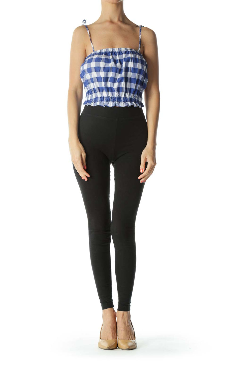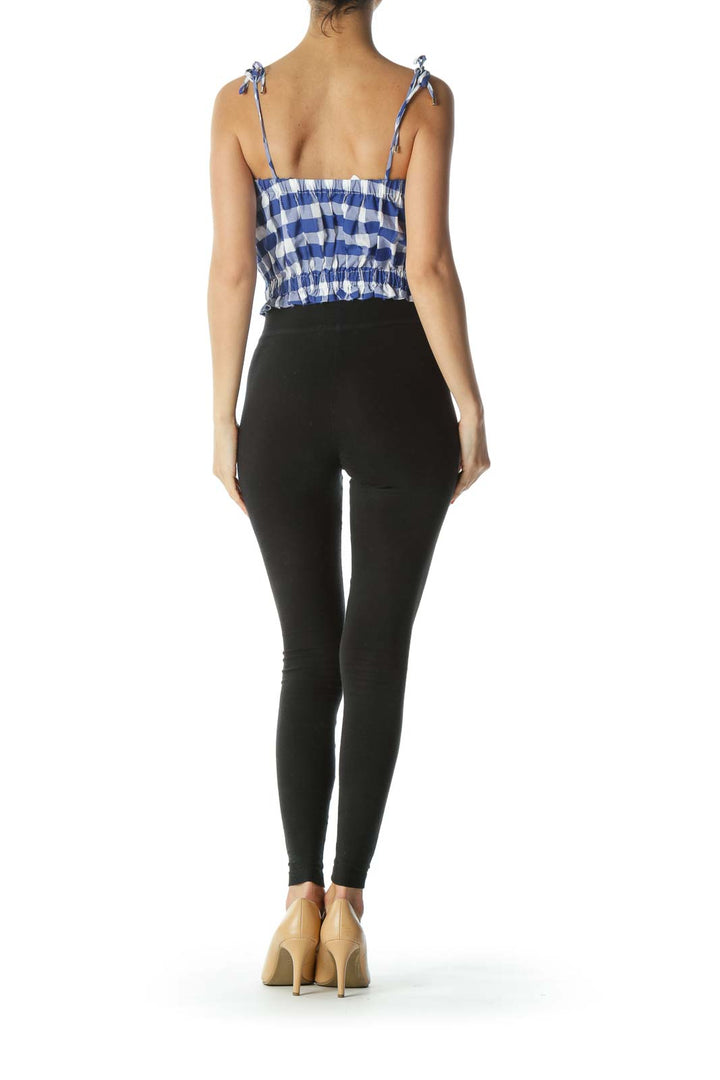 Blue/White Gingham Detailed Raw-Hem-Squares 100% Cotton Top