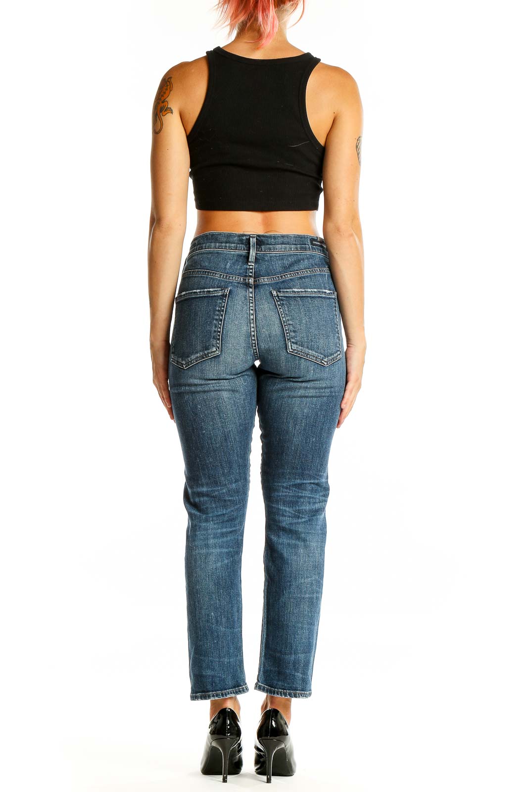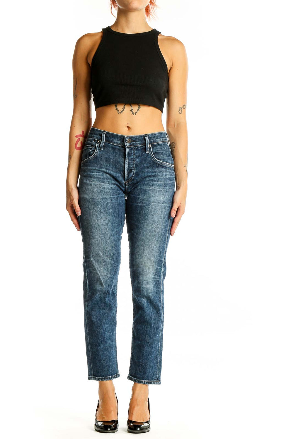 Step into timeless style with these classic blue straight leg jeans from Citizens of Humanity. Crafted from a comfortable blend of cotton and polyurethane, these jeans offer both durability and stretch for all-day wear. The medium wash denim features subtle fading and whiskering, giving them a perfectly lived-in look.