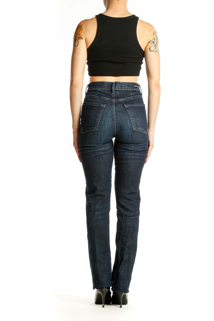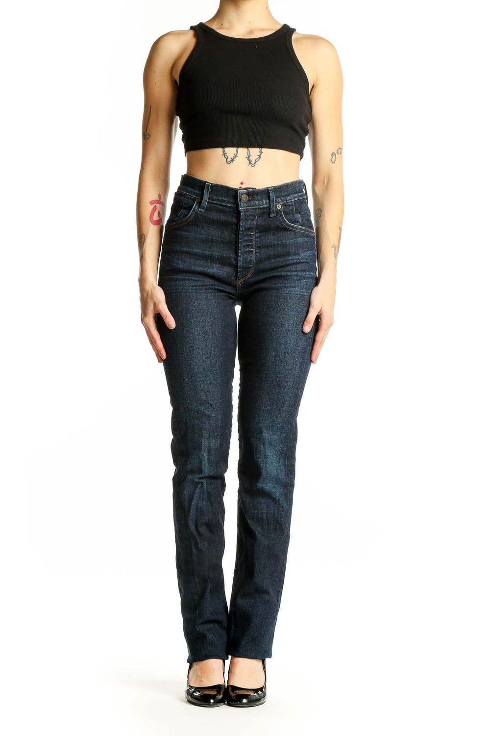 Step into timeless style with these dark blue straight leg jeans from Citizens of Humanity. Crafted from a premium blend of cotton and polyurethane, these jeans offer both comfort and durability. The classic straight leg silhouette provides a flattering fit that elongates your legs, while the dark wash adds a touch of sophistication suitable for both casual and dressier occasions. With a mid-rise waist and a 44-inch length, these jeans are perfect for pairing with your favorite tops and shoes. The excellent condition ensures you'll look polished and put-together every time you wear them. Experience the quality and style that Citizens of Humanity is known for with these versatile denim staples.