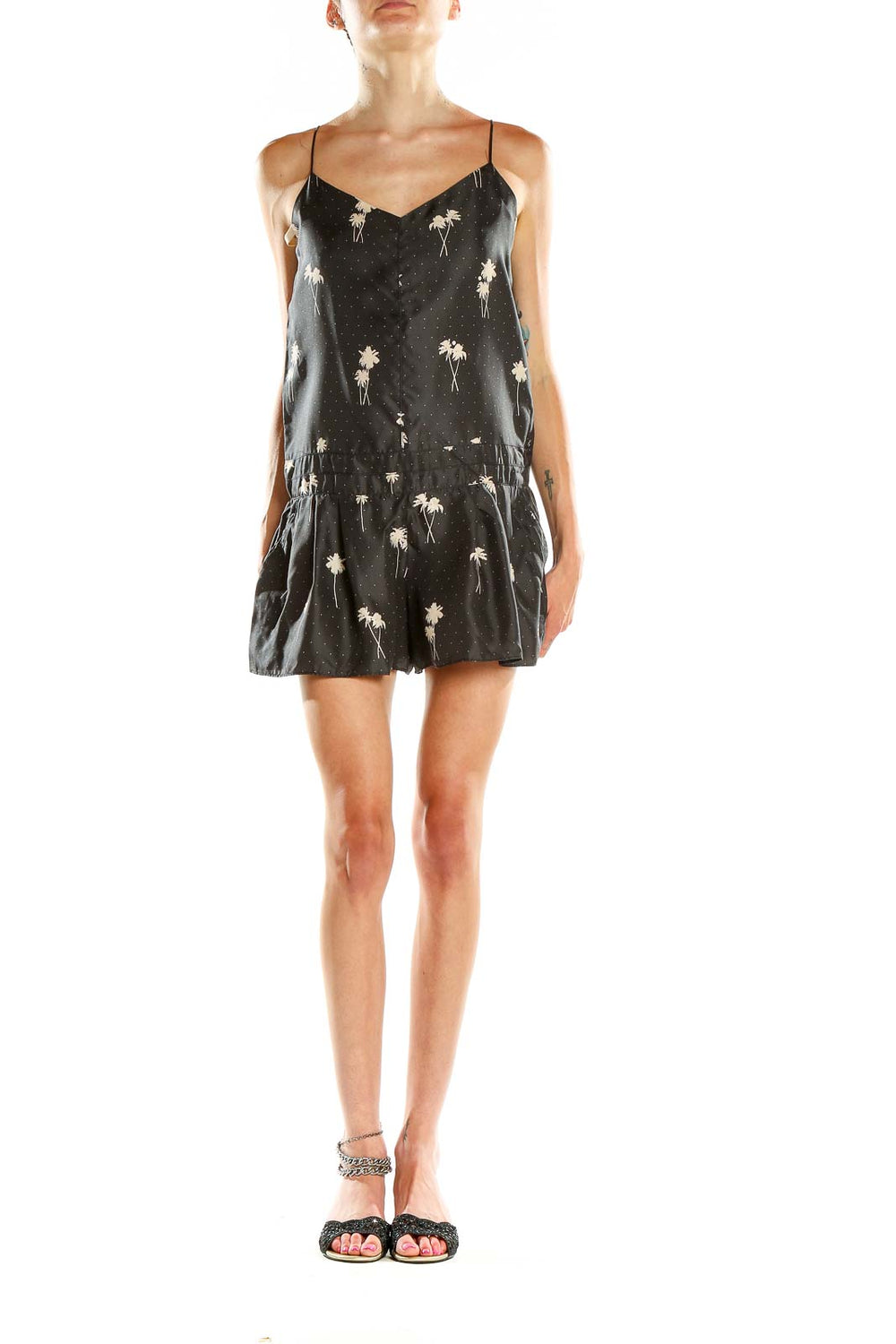 Step into effortless style with this charming black romper from Rag & Bone. Featuring a delightful palm tree print in a soft cream hue, this all-in-one piece exudes a playful yet sophisticated vibe. The spaghetti straps and V-neckline create a flattering silhouette, while the relaxed fit through the body ensures comfort for all-day wear. A subtle polka dot pattern adds an extra layer of visual interest to the fabric. The dropped waist leads to a flirty ruffle detail at the hem, giving the romper a feminine touch. Perfect for warm weather outings or casual evenings, this romper in excellent condition is a versatile addition to your wardrobe.