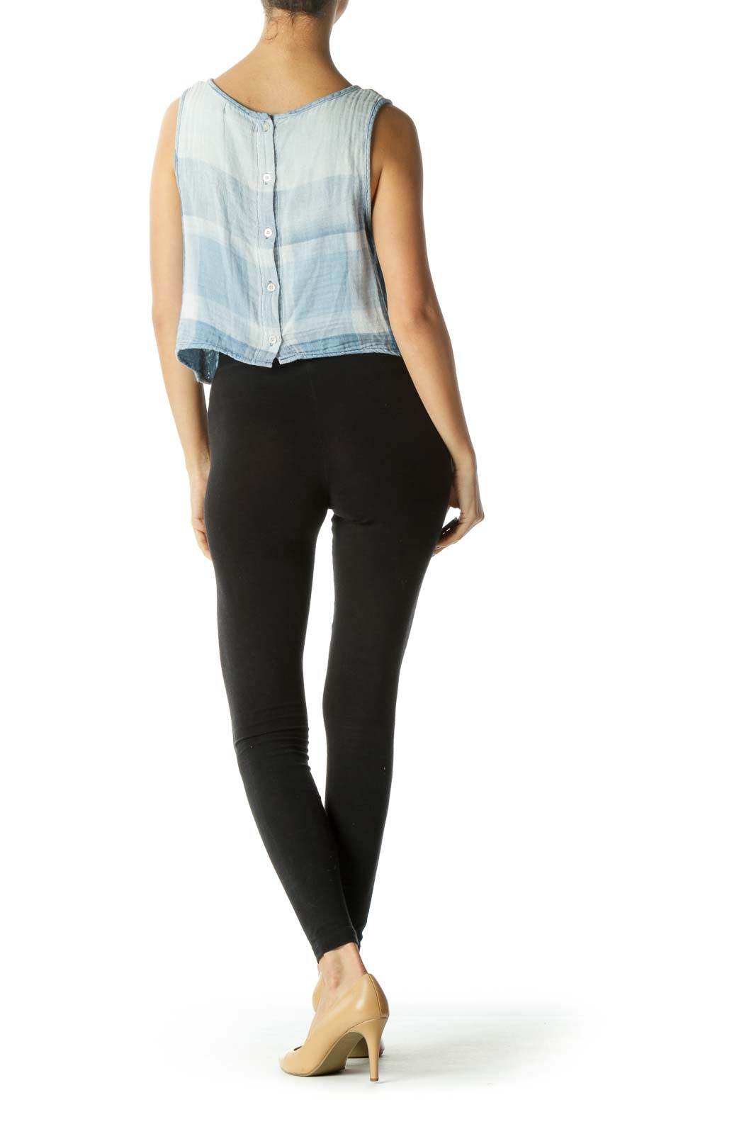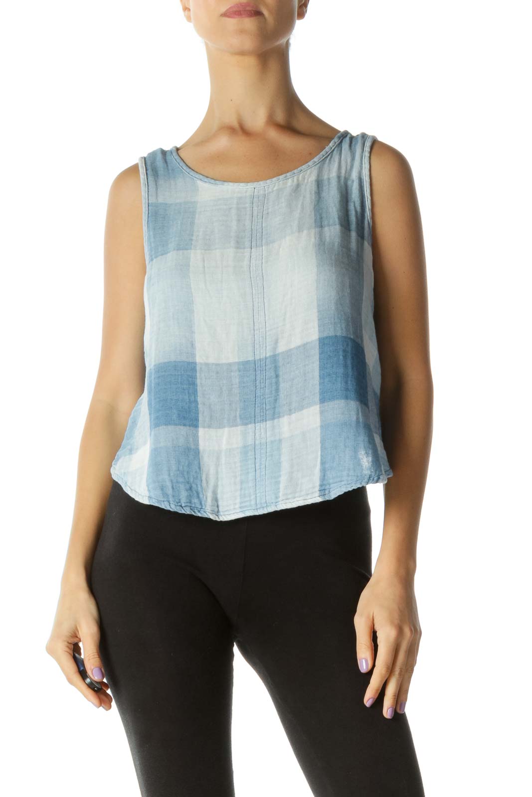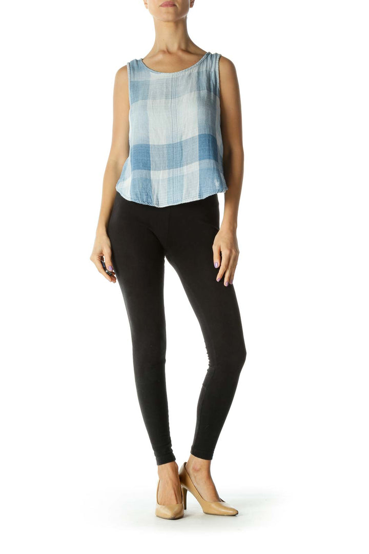 Blue Plaid Button Back Tank Top