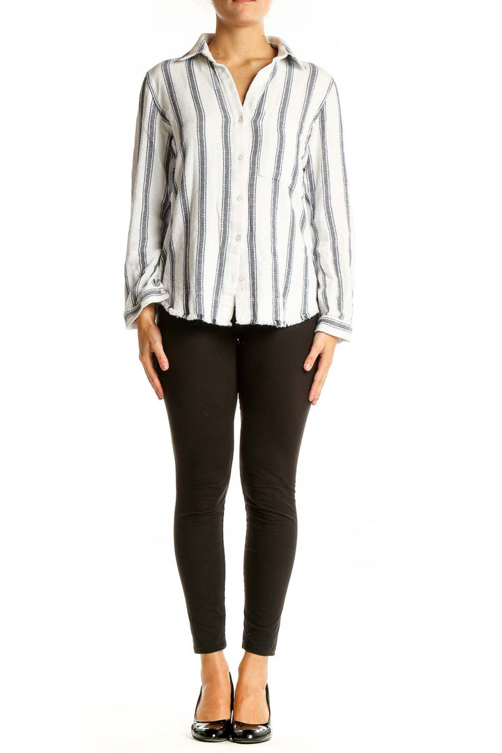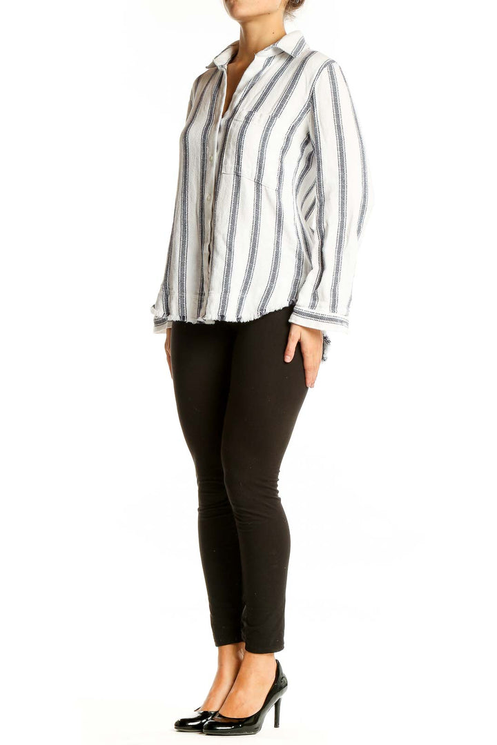 Elevate your casual wardrobe with this chic white and blue striped button-down shirt from cloth & stone. Crafted from soft, breathable cotton, this top offers both style and comfort for everyday wear. The classic vertical stripe pattern in soothing blue tones against a crisp white background creates a timeless look that's perfect for various occasions.