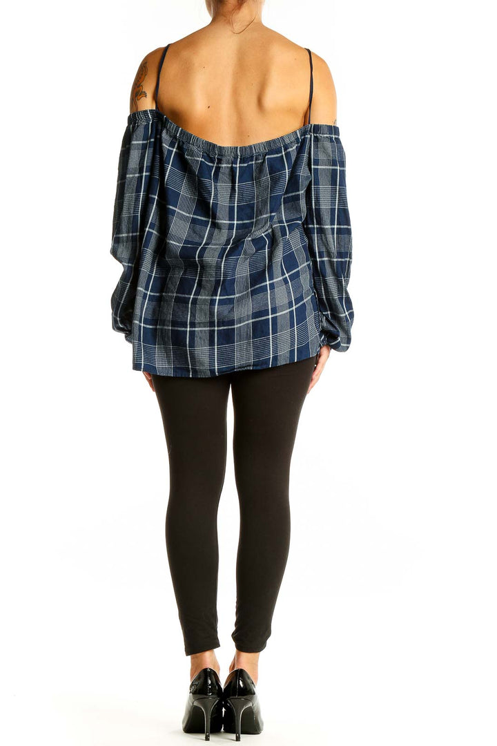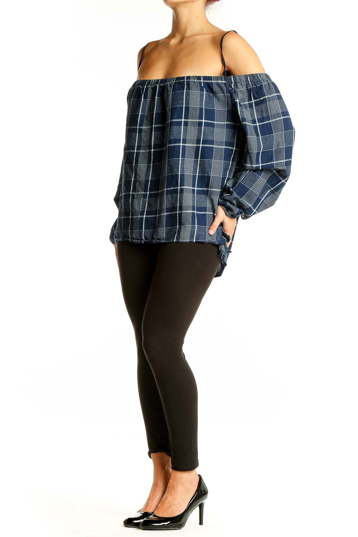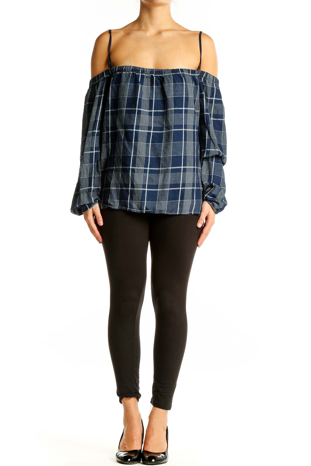 Elevate your casual wardrobe with this chic navy plaid off-shoulder top from cloth & stone. Crafted from soft, breathable cotton, this top features a trendy off-shoulder design with thin spaghetti straps for added support. The relaxed fit and billowy sleeves create a flattering silhouette that's perfect for various body types. The classic plaid pattern in shades of navy and white adds a timeless touch to this versatile piece. Ideal for pairing with your favorite jeans or leggings, this top transitions effortlessly from day to night. In excellent condition, this cloth & stone top is a must-have addition to your wardrobe, offering both style and comfort for any casual occasion.