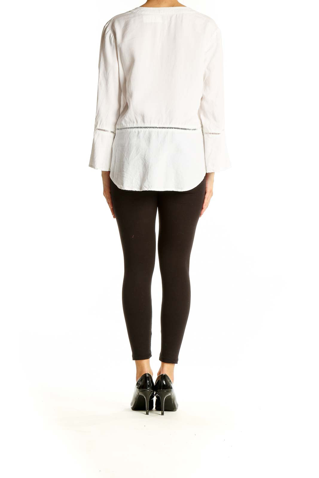 Back view of white Tencel Lyocell V-neck blouse with bell sleeves by cloth & stone